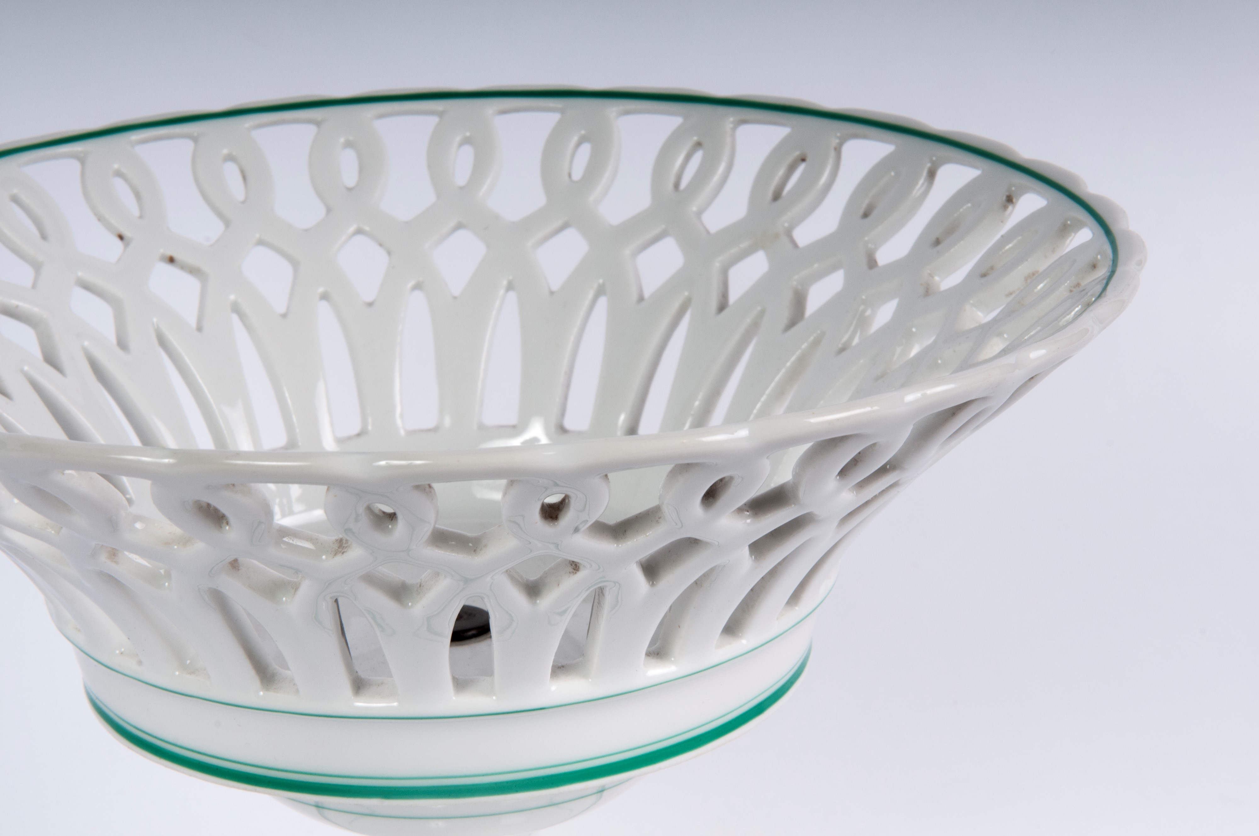 dalla tesa traforata co decoro a righe orizzontali verdi. Manifattura toscana.