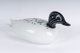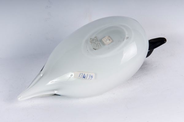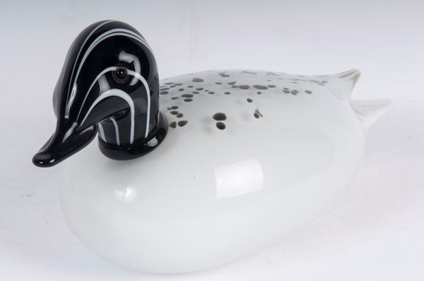 Anatra in vetro bianco e nero, Murano '87