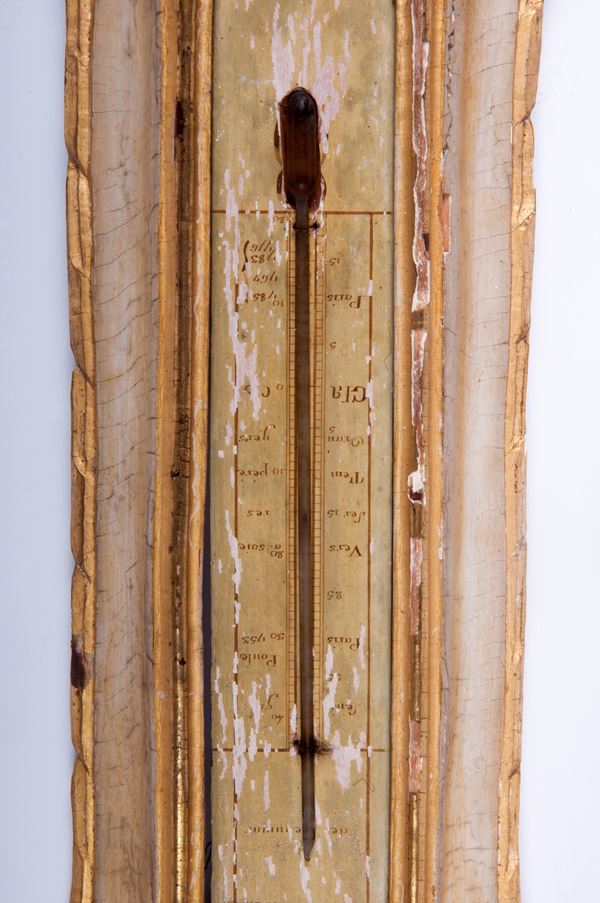 Barometro con termometro in legno dorato, inizi XX secolo