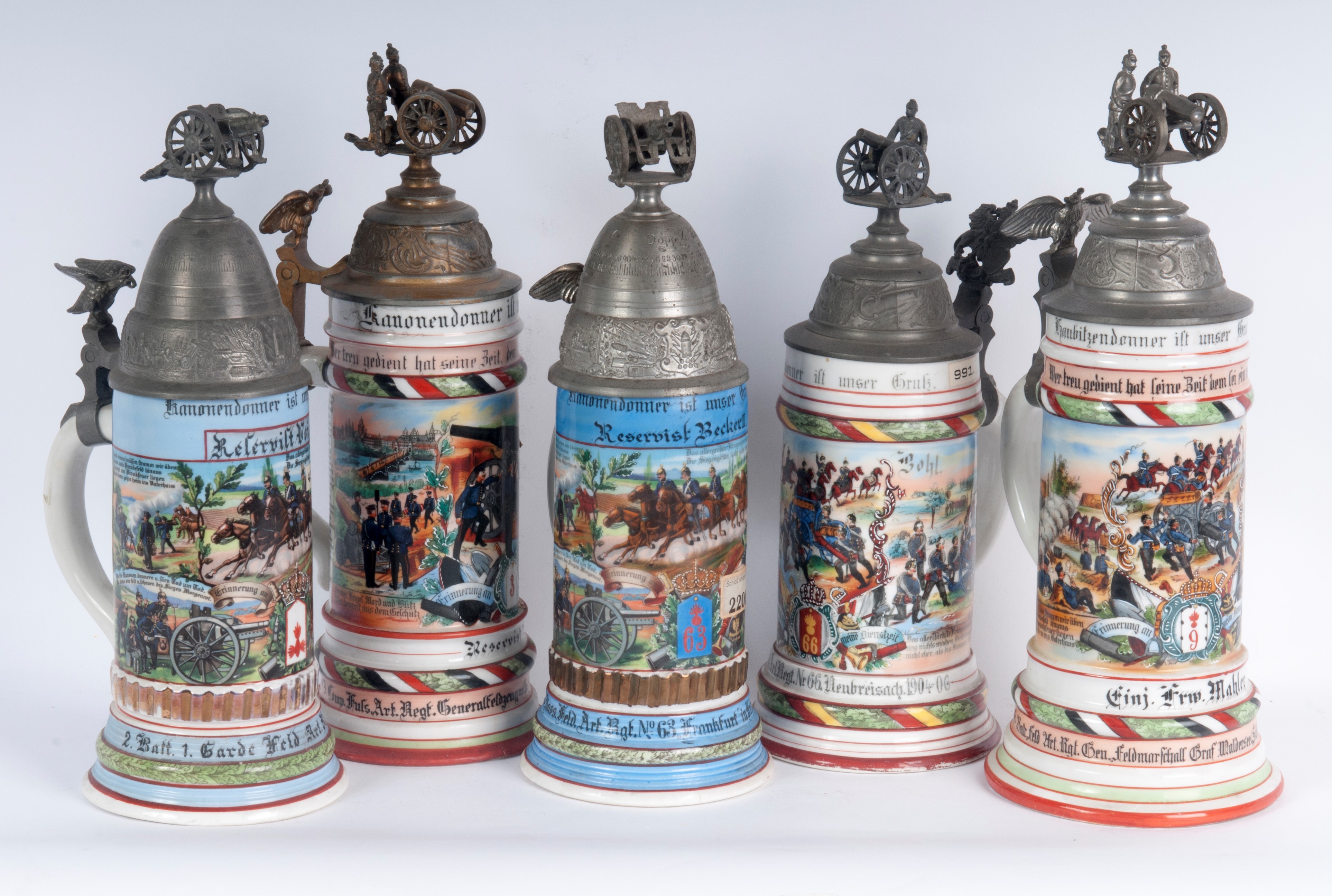 Boccale del riservista, lotto di cinque, primo quarto del XX secolo