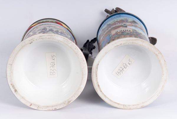 in ceramica policroma con coperchio in peltro sormontato da cannone. Decoro con iscrizione del reparto di appartenenza e scene militari.