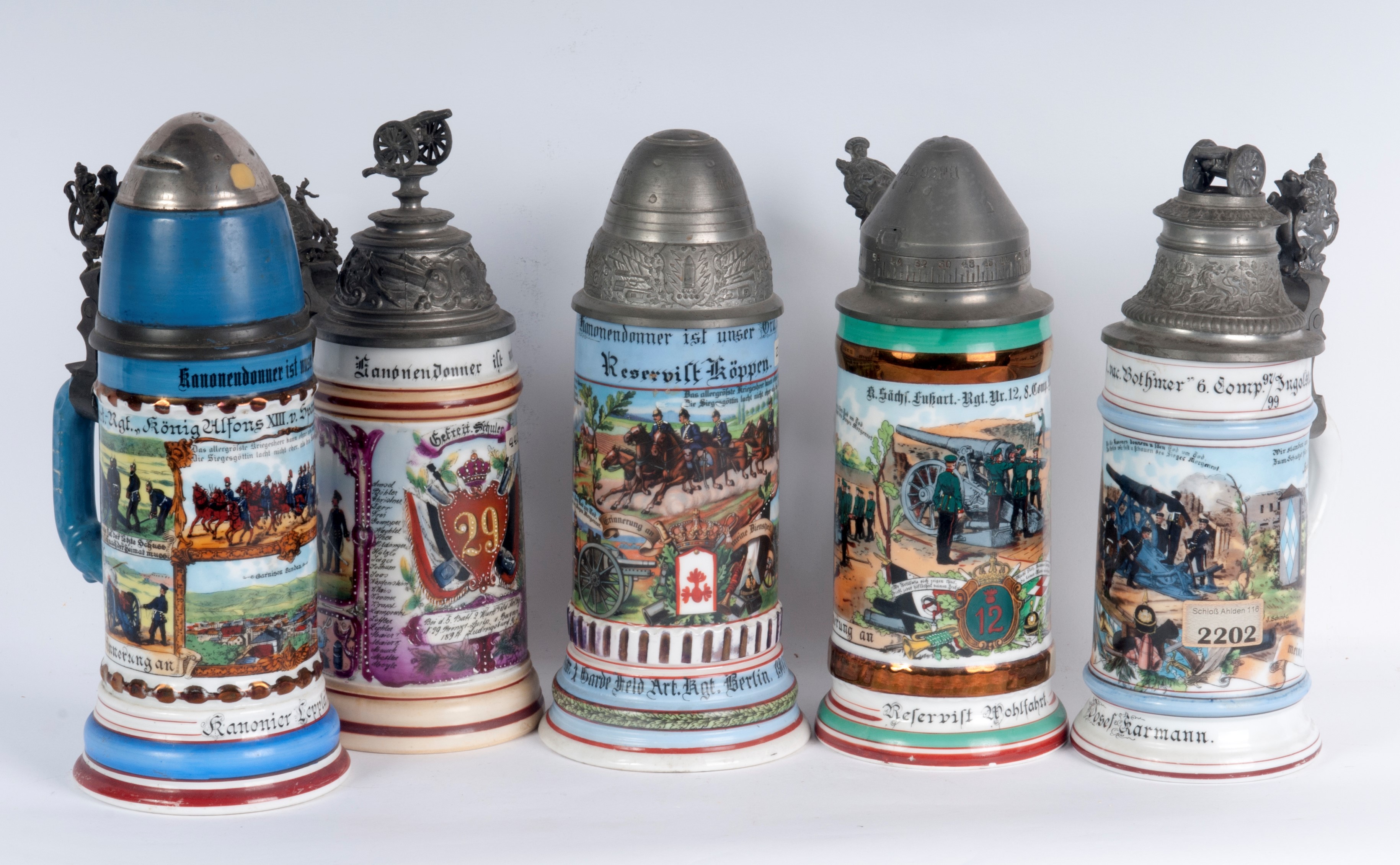 Boccale del riservista, lotto di cinque, primo quarto del XX secolo