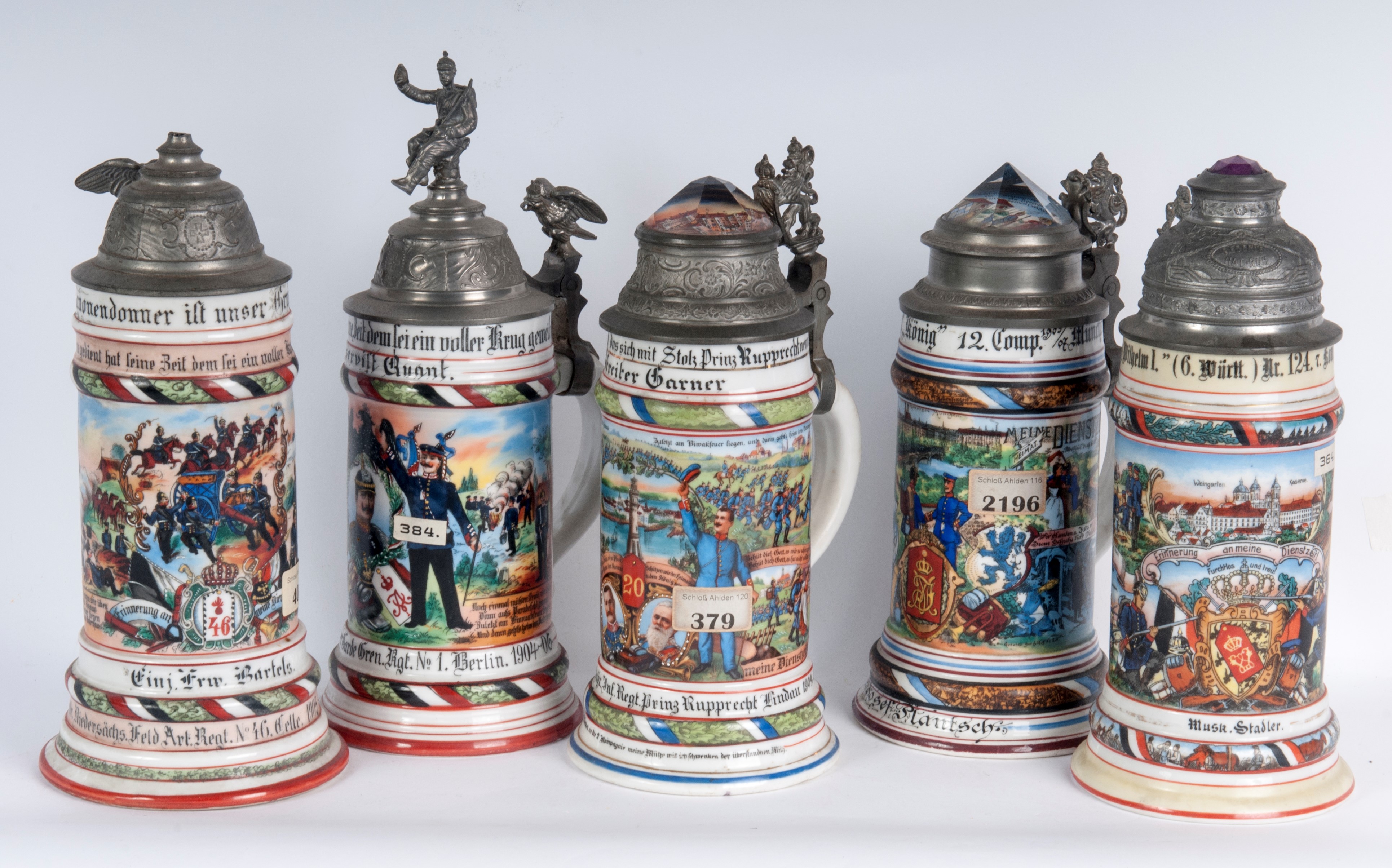 Boccale del riservista, lotto di cinque, primo quarto del XX secolo