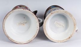 in ceramica policroma con coperchio in peltro dei quali tre sormontati da cristalli e uno con soldati ; un coperchio rotto.