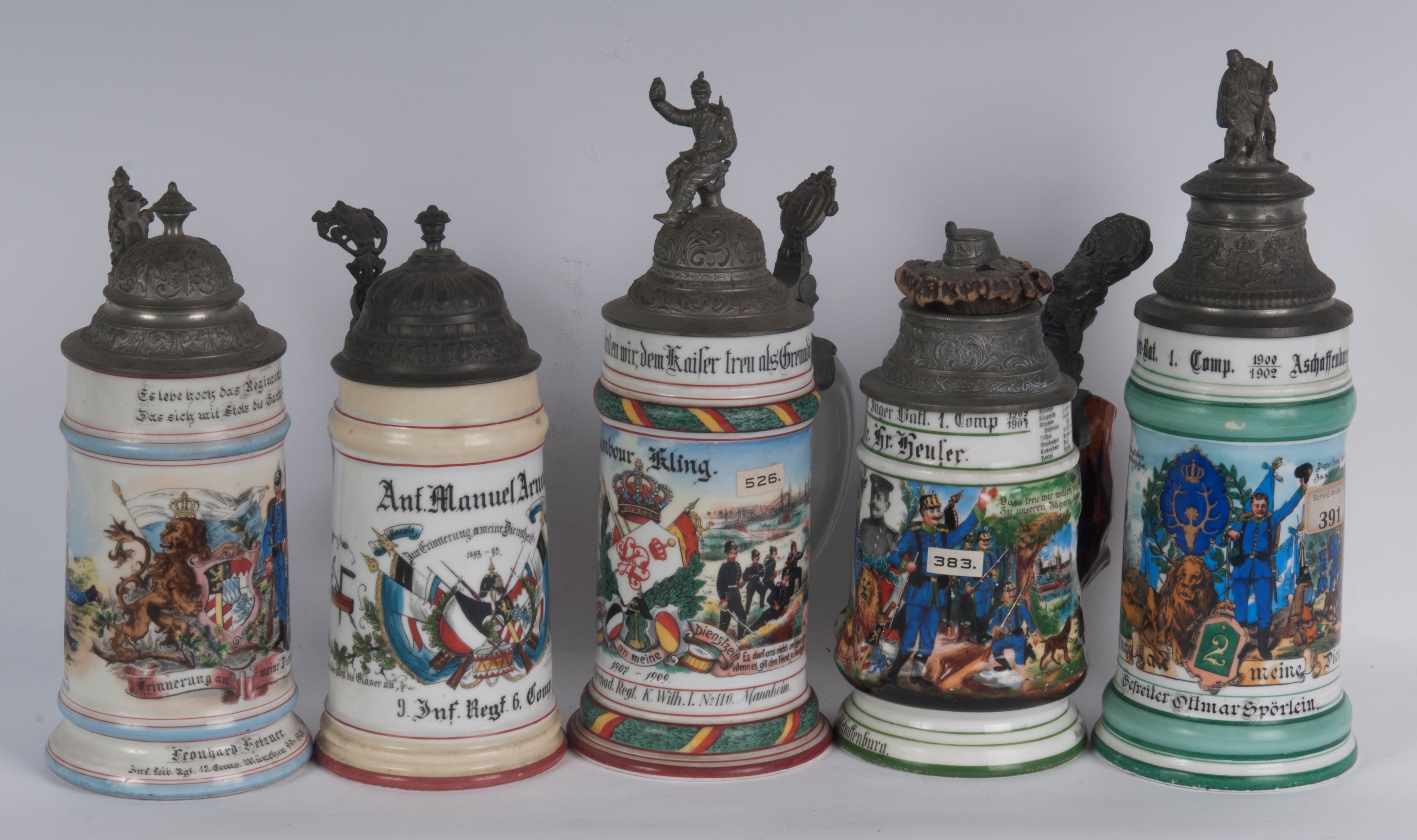 Boccale del riservista, lotto di cinque, primo quarto del XX secolo