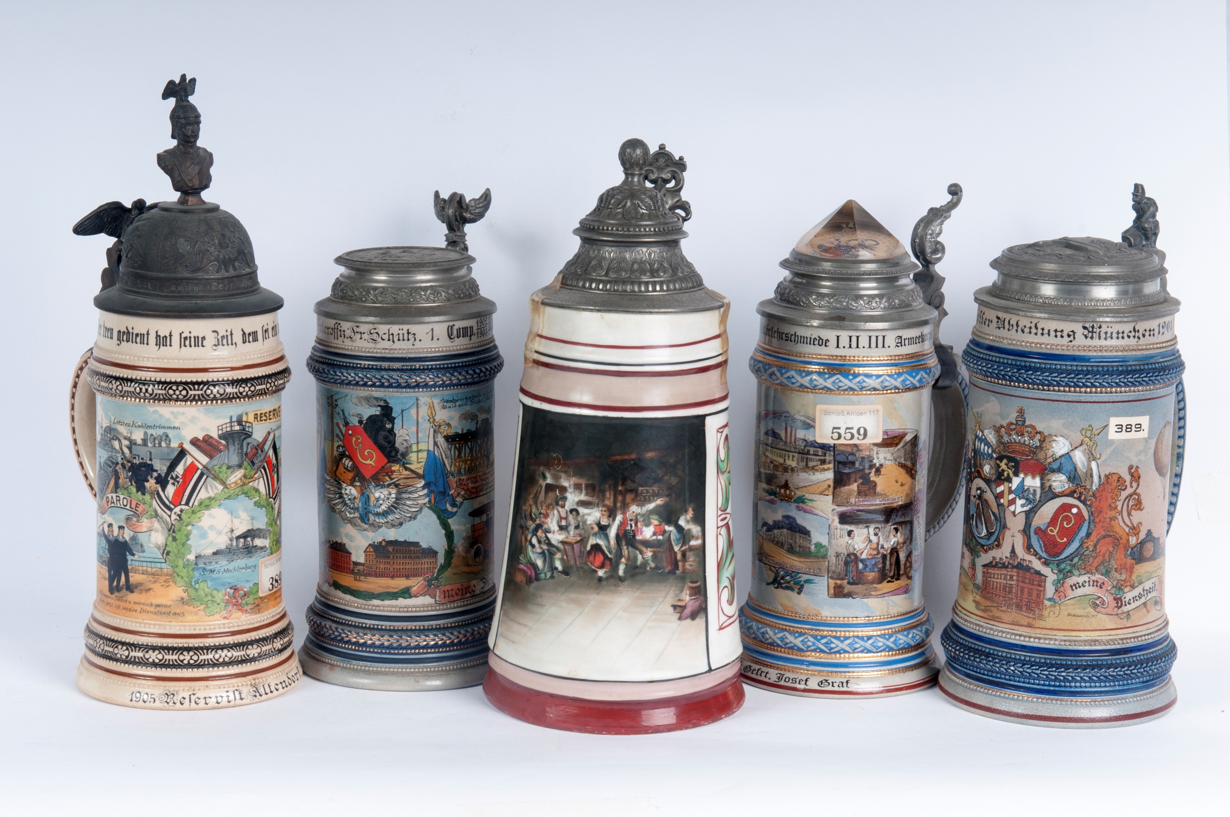 Boccale del riservista, lotto di cinque, primo quarto del XX secolo