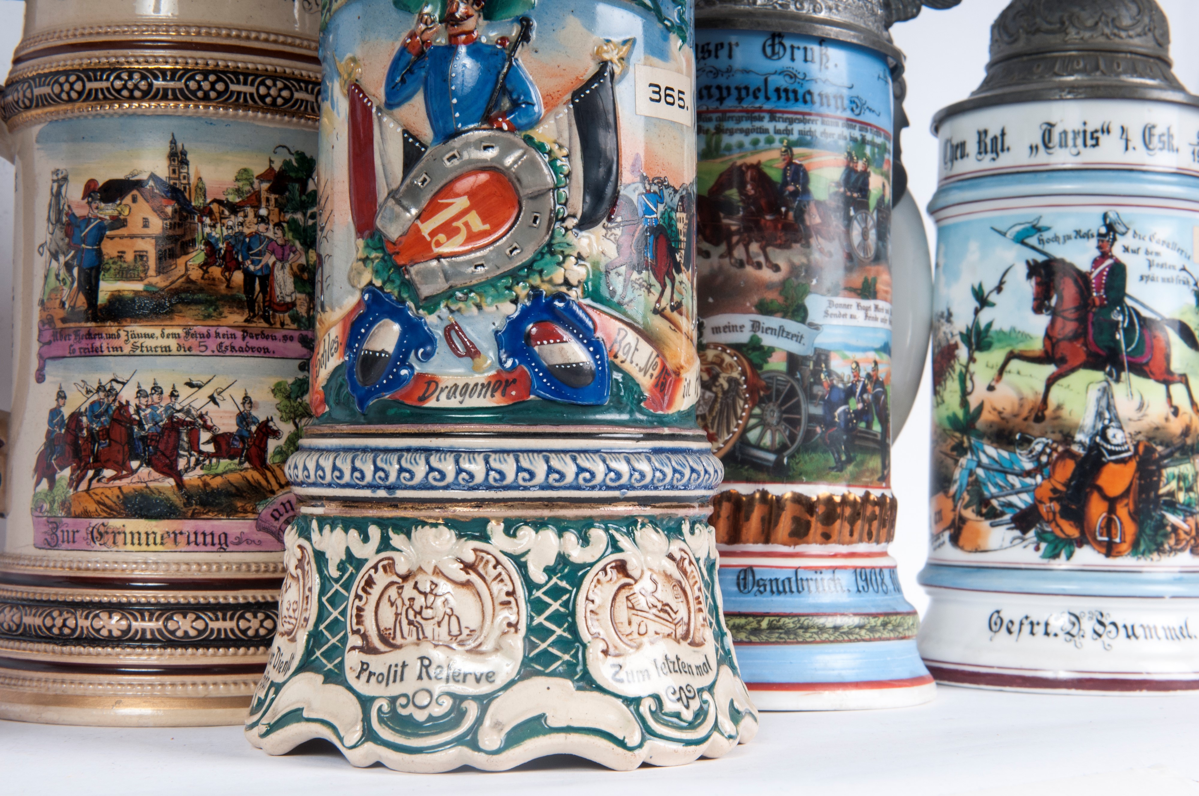 Boccale del riservista, lotto di cinque, primo quarto del XX secolo