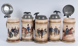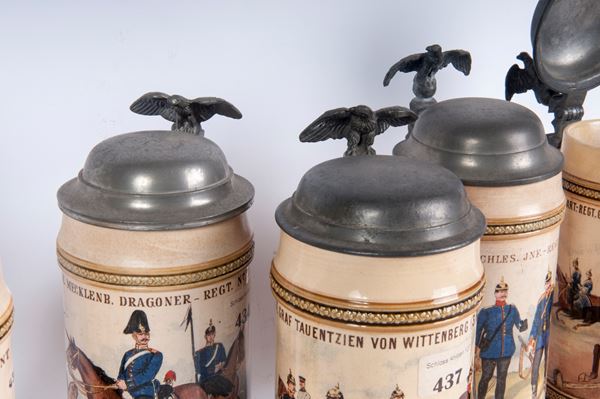 Boccale del riservista (Stein), lotto di cinque, primo quarto del XX secolo