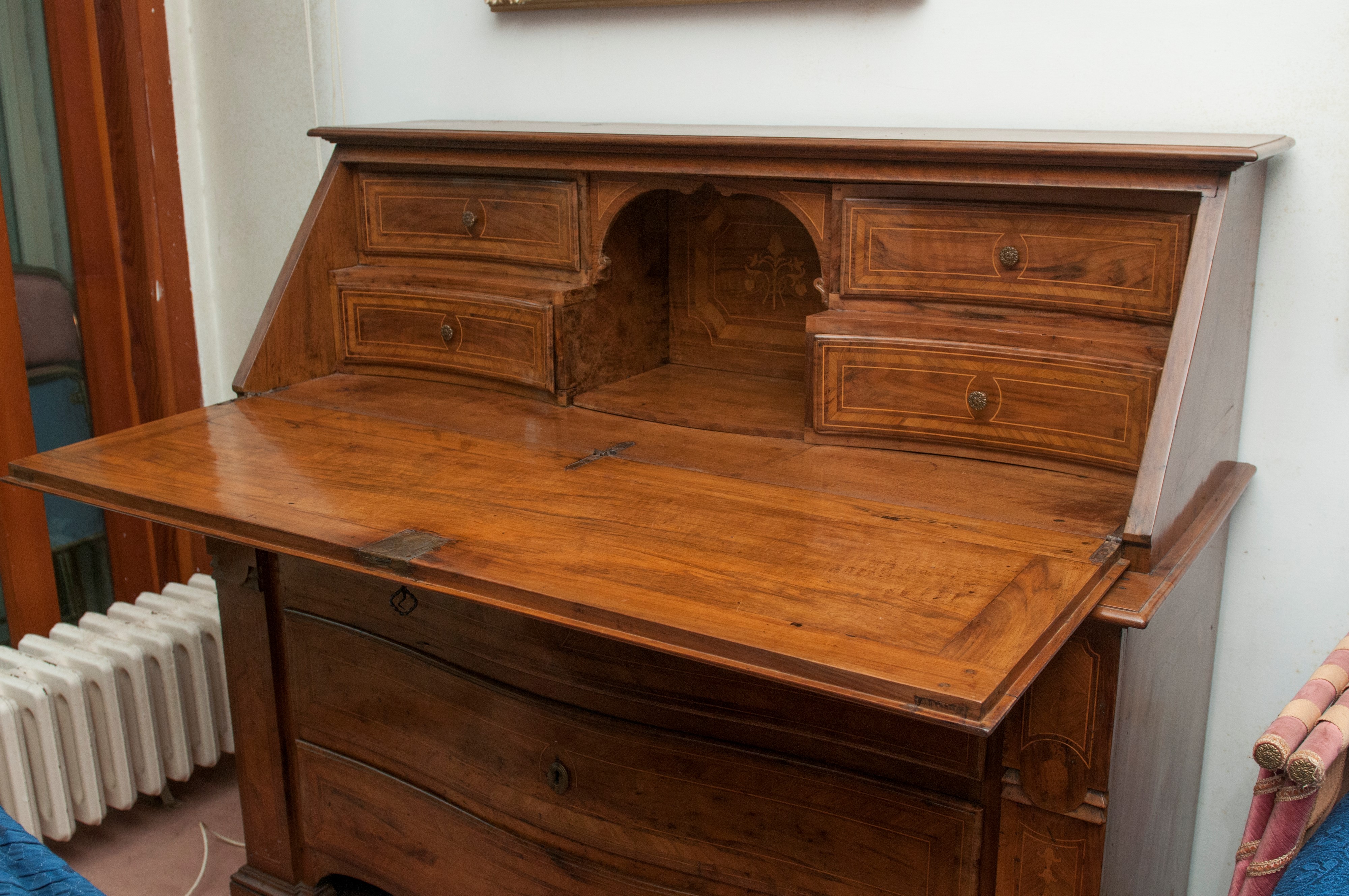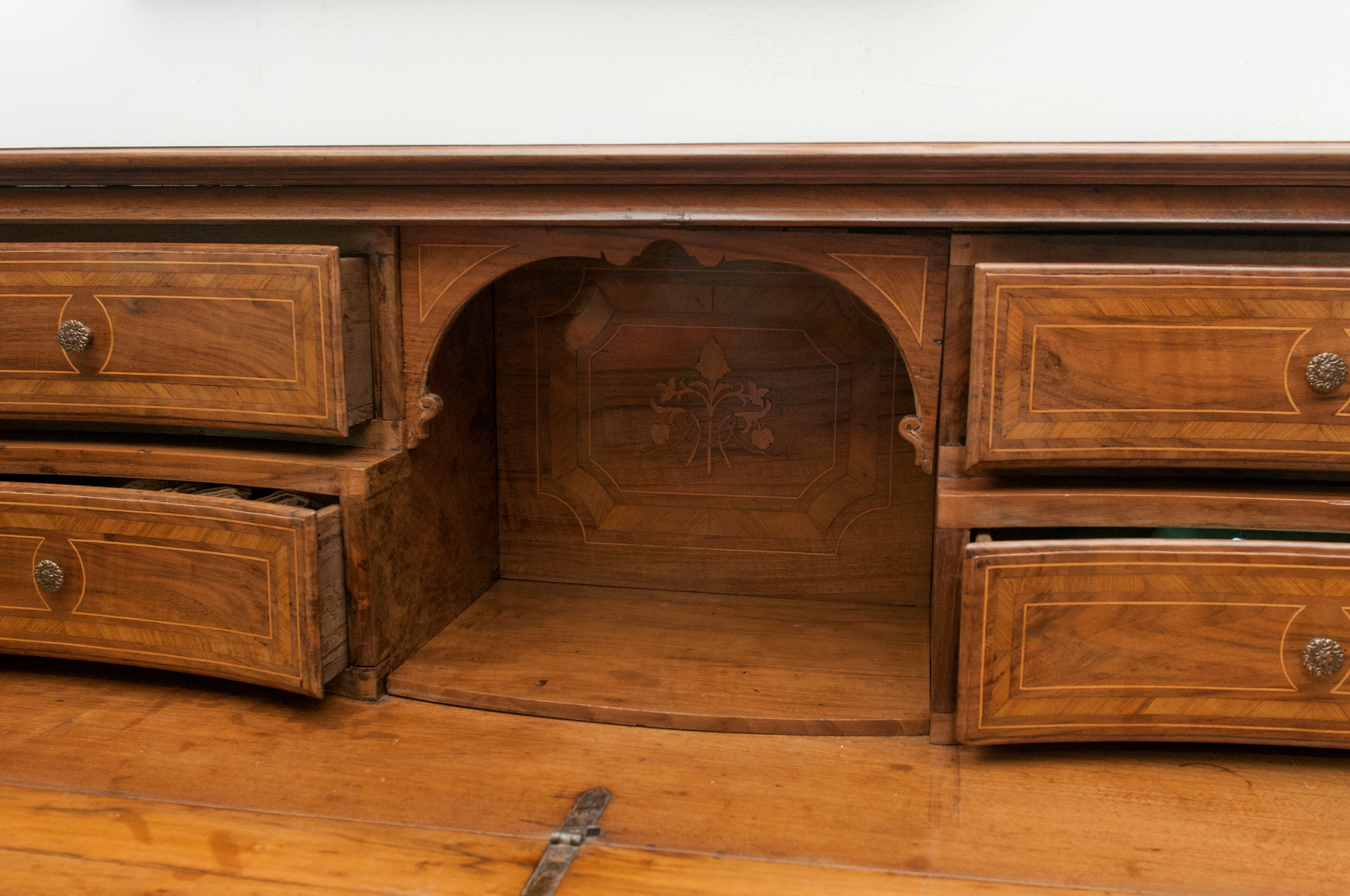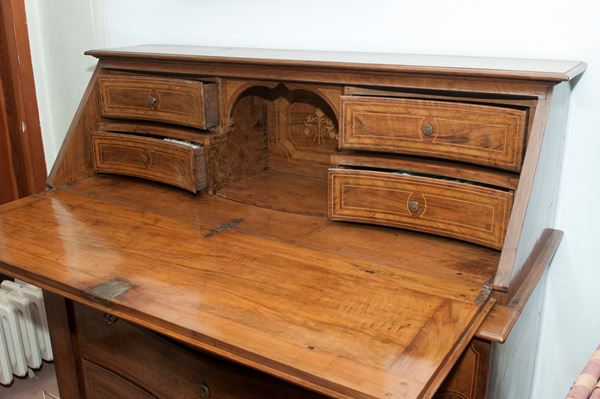 Cassettone in legno di noce con ribalta, XVIII secolo