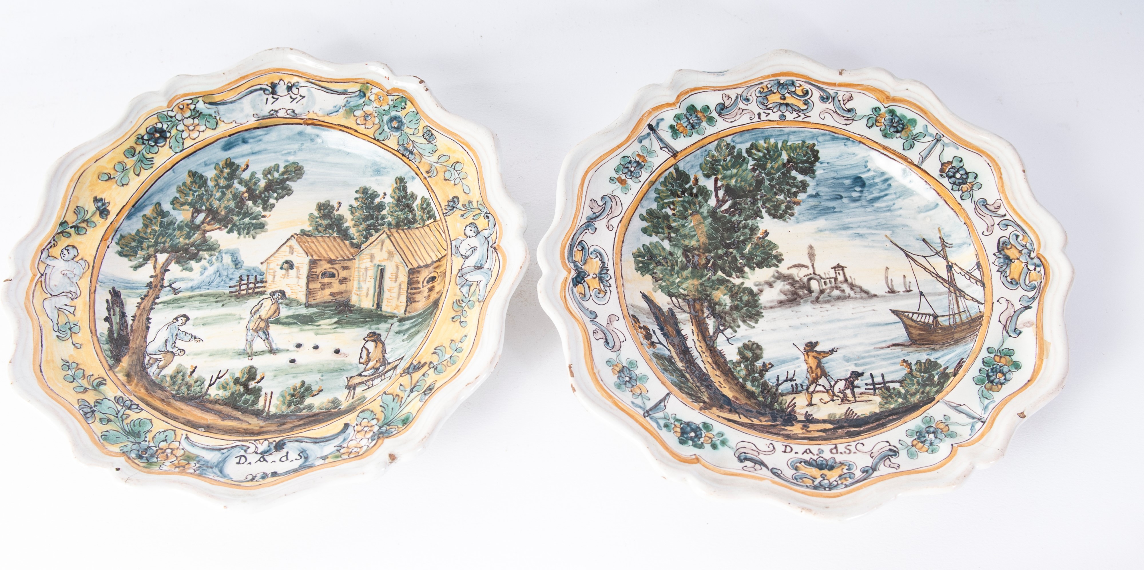 Stato di conservazione: minime usure e mancanze come da uso nel tempo, entrambi i piatti minime felature radianti che dal bordo vanno verso il fondo.
