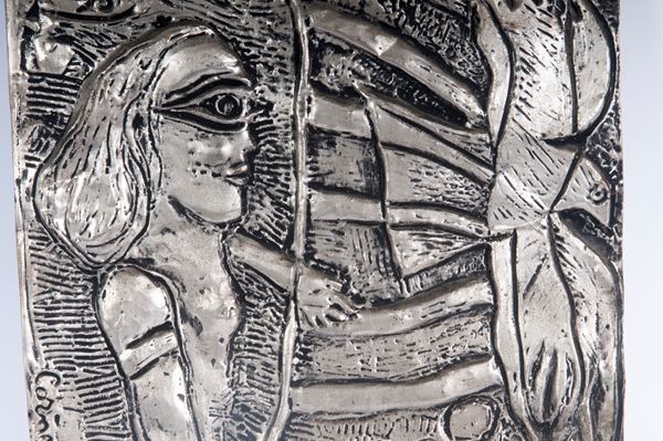 multiplo non numerato dalla tiratura di 140 esemplari in argento. Firma incisa sul lato sinistro. Editore F. Perucca , San Luca di Camerino