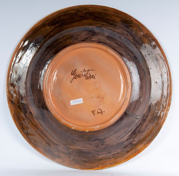 Piatto da pompa in ceramica policroma, ultimo quarto XX secolo