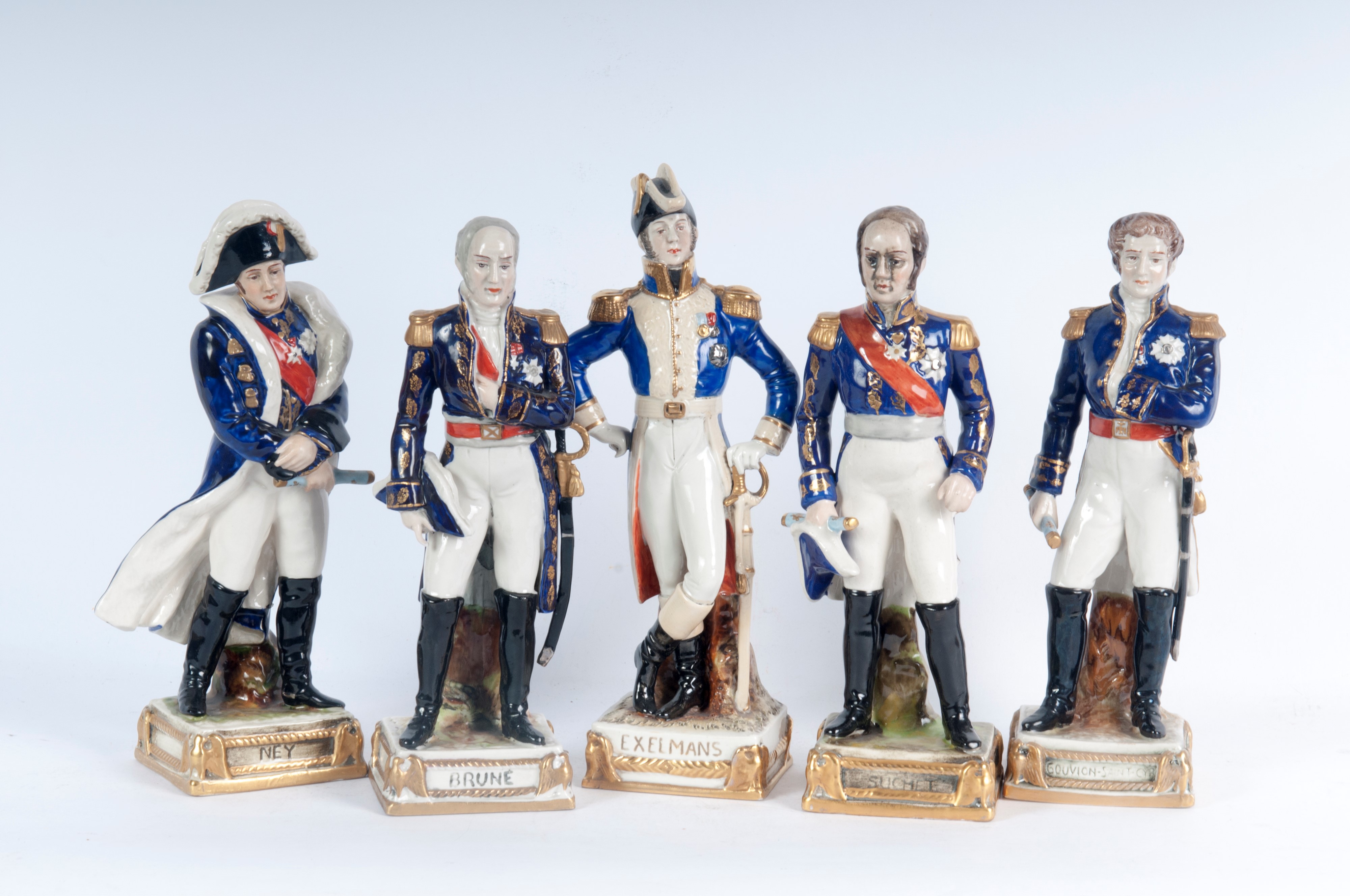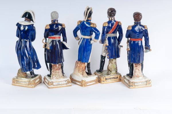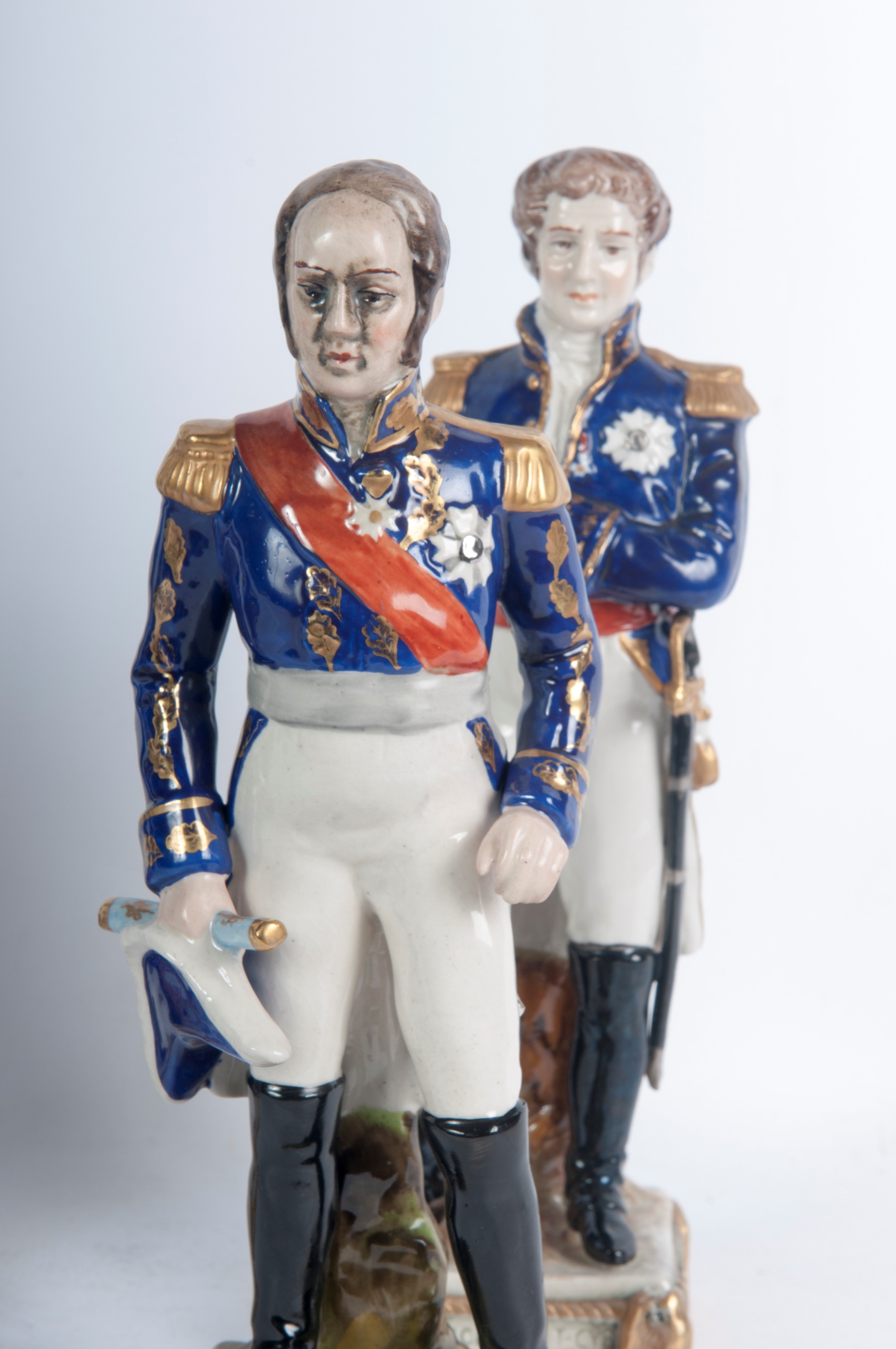 figure militari, formatura a colaggio. Manifattura francese in blu sotto smalto. una "N" coronata sotto smalto.
