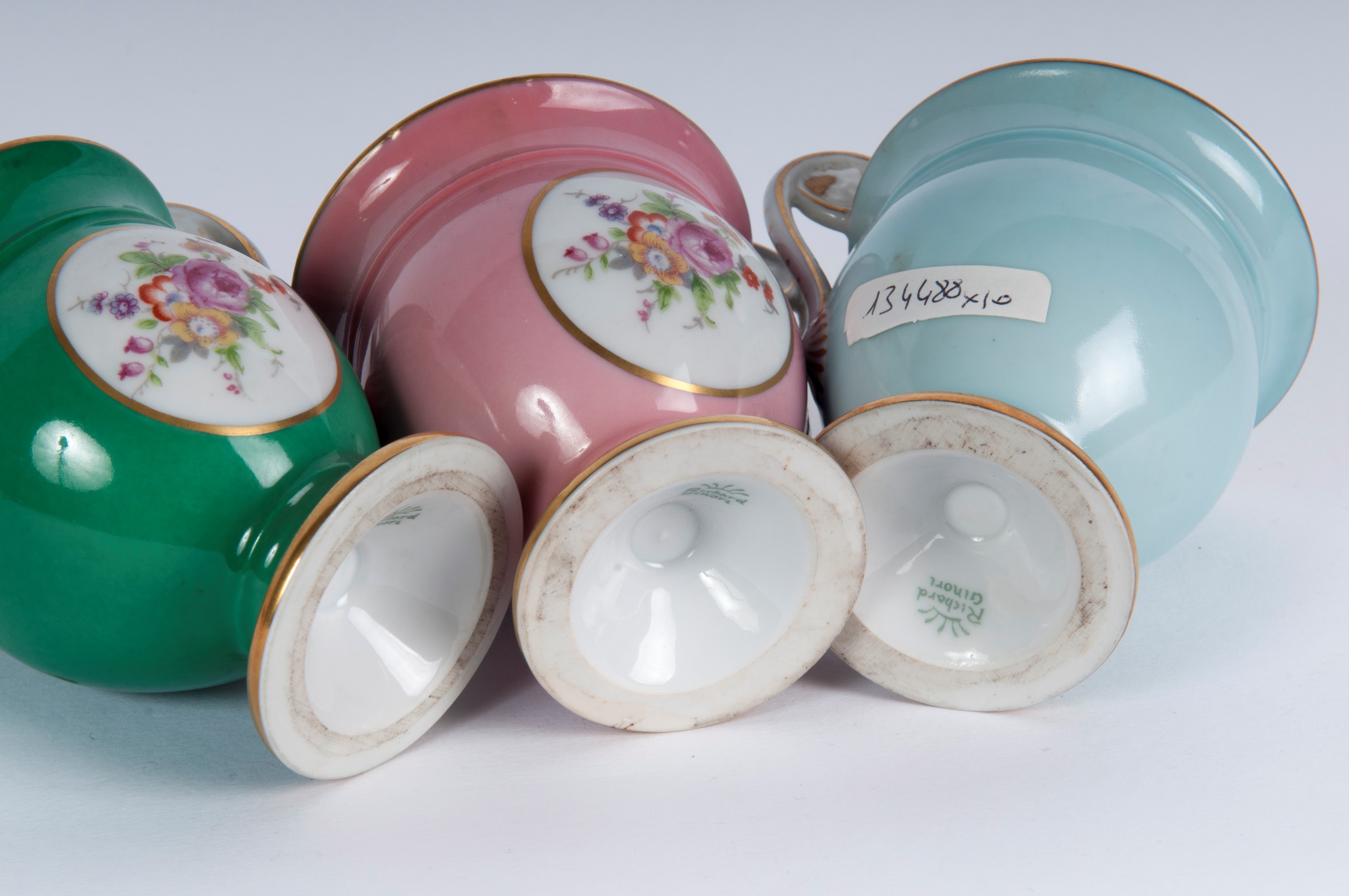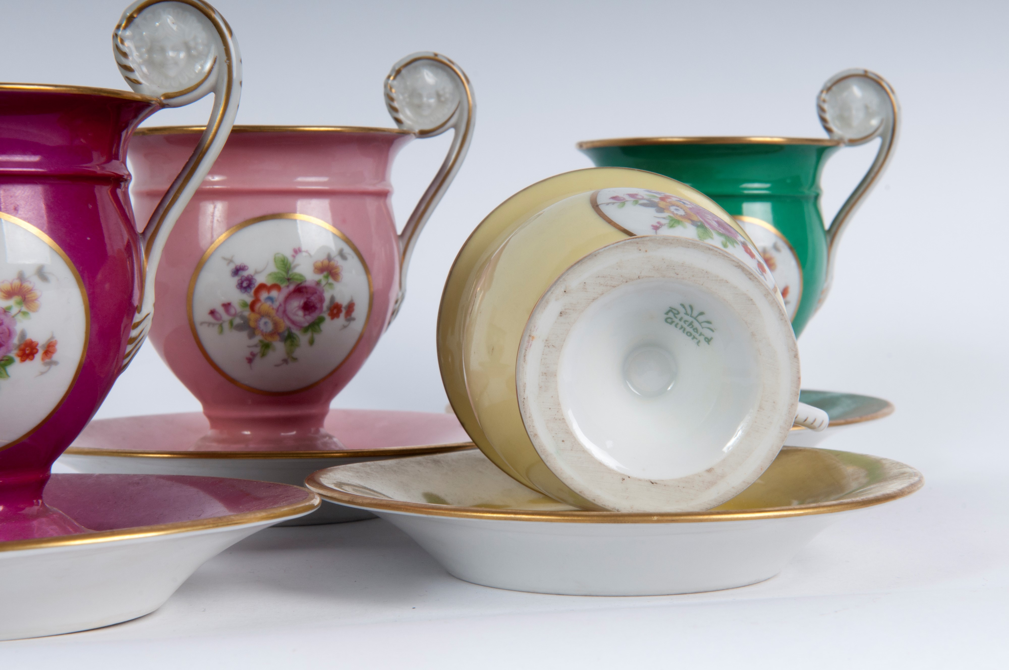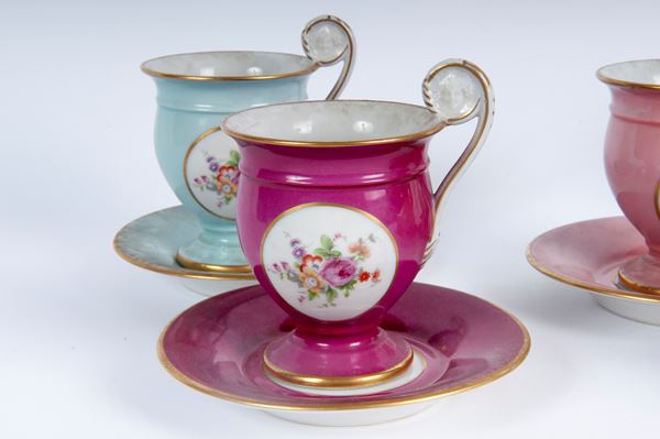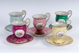 Lotto di cinque tazze da caffè con piatto, metà XX secolo