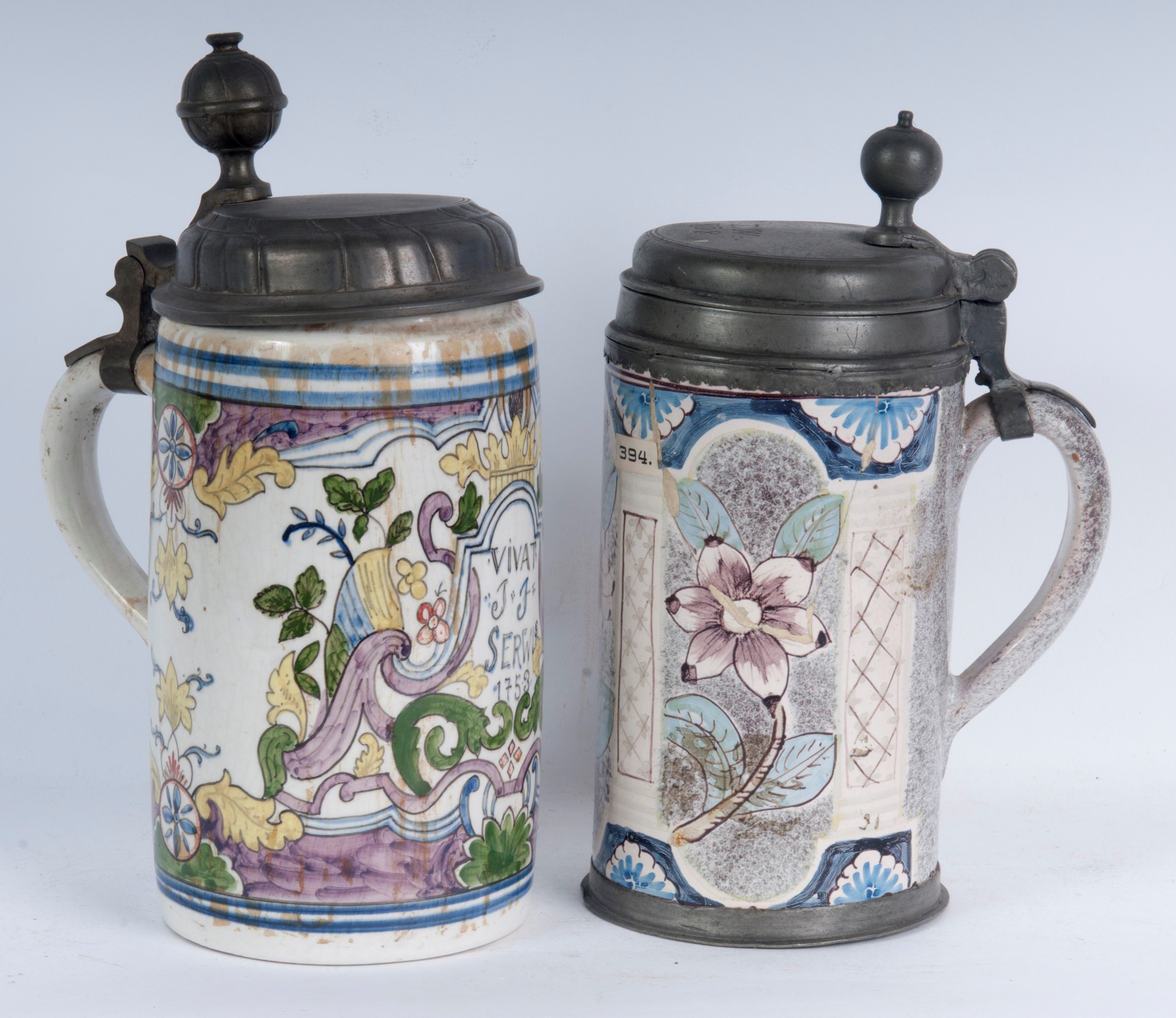 Lotto di due boccali da birra, metà XVIII secolo