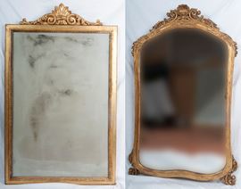 Lotto di due specchiere da parete in legno dorato, fine XIX inizi XX secolo