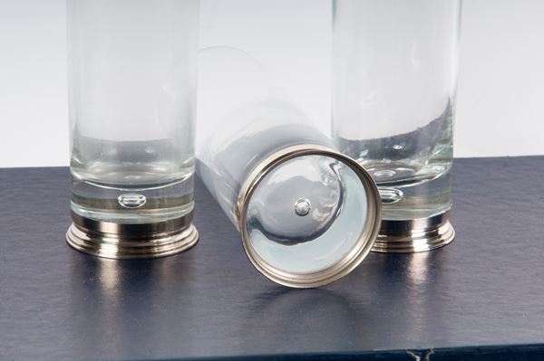 Lotto di sei bicchieri di forma cilindrica in cristallo, seconda metà XX secolo