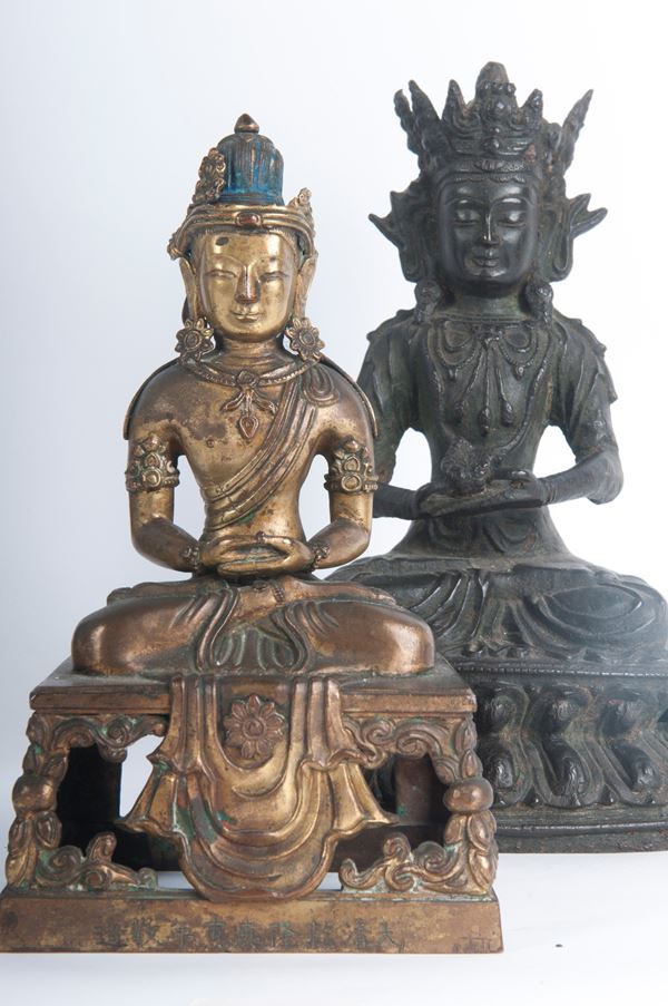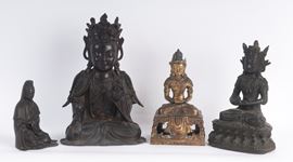 Lotto di tre Buddha ed una Guanyin, arte indocinese XVIII /XIX secolo