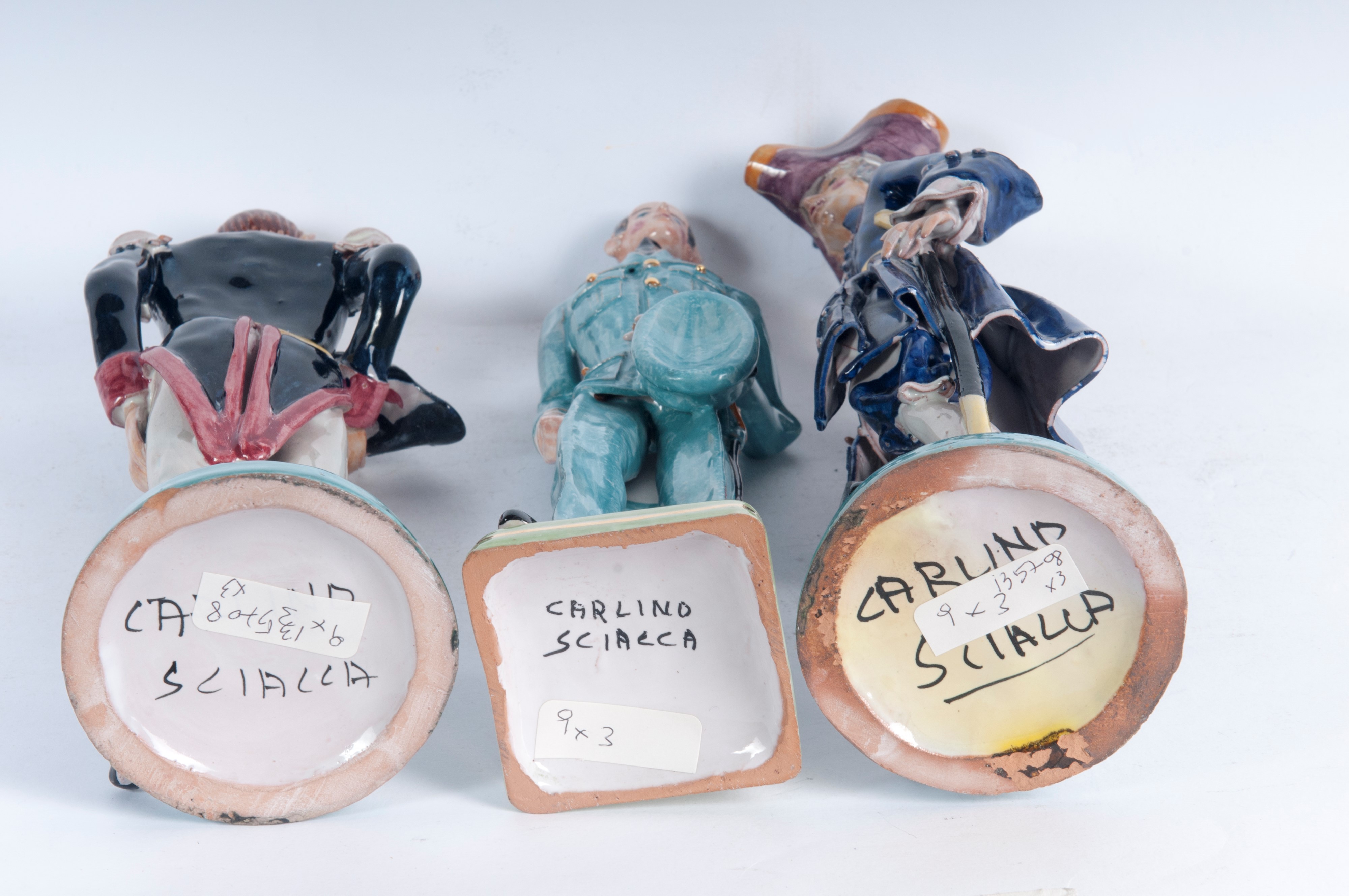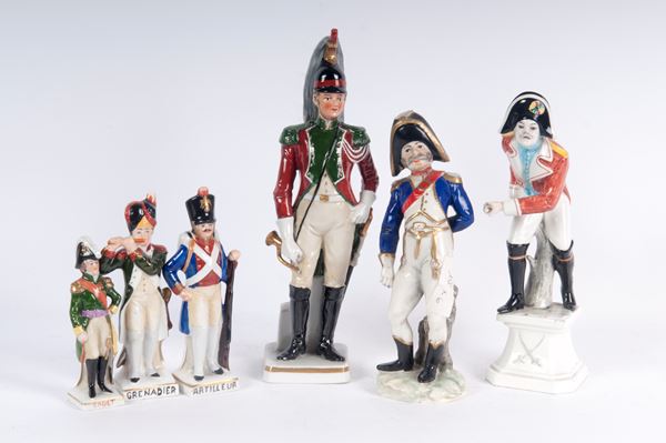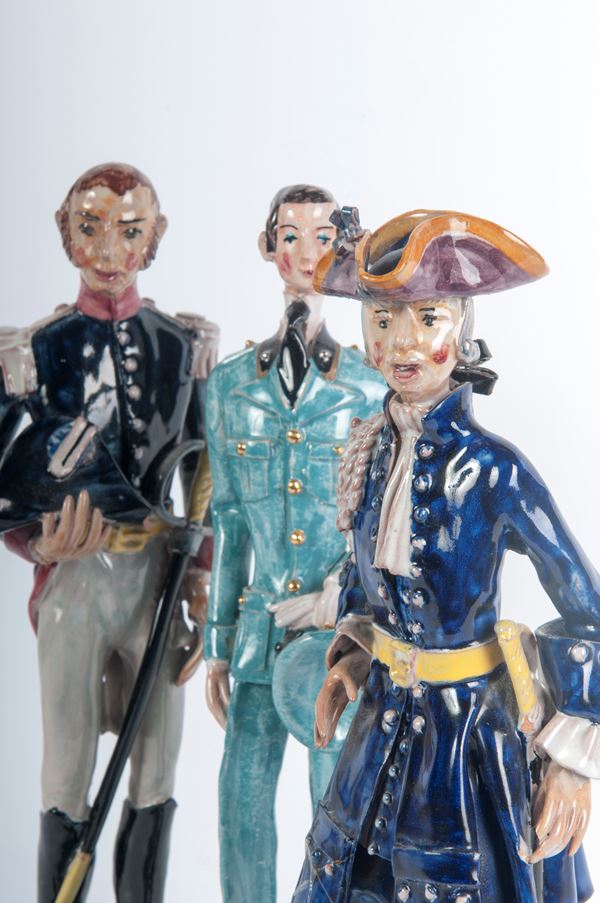 Lotto di tre ceramiche policrome figure di militari, seconda metà XX secolo