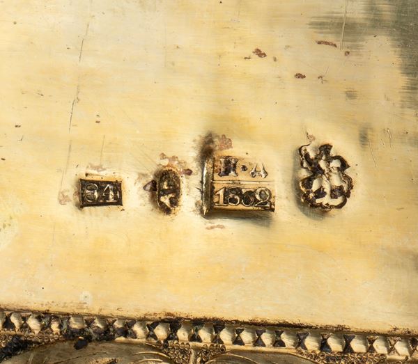 Marchi Mosca 1832 dell'argento 84 zolotniks che corrisponde a 875/1000, l'assaggiatore e' Nikolai Lukitsch Dubrovin attivo a Mosca dal 1822 al 1861.