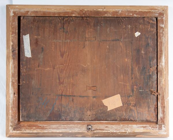 ritoccata a mano incollata su tavola in cornice.