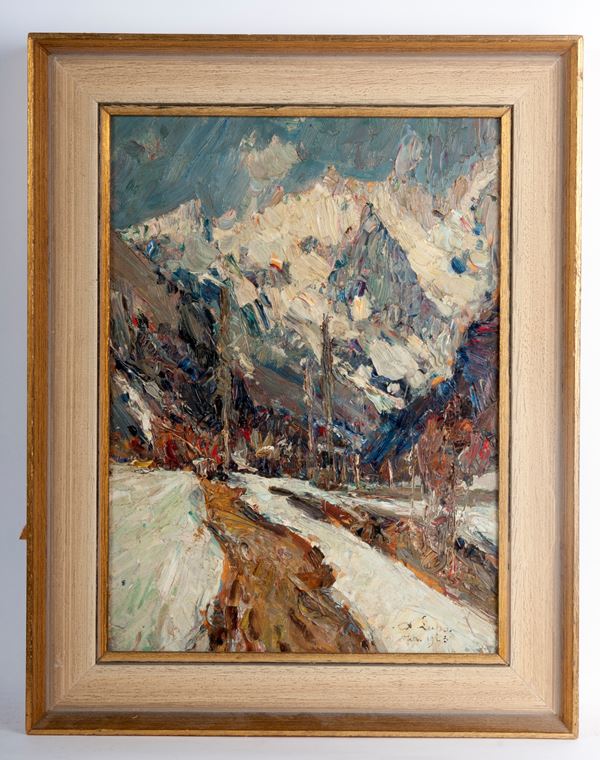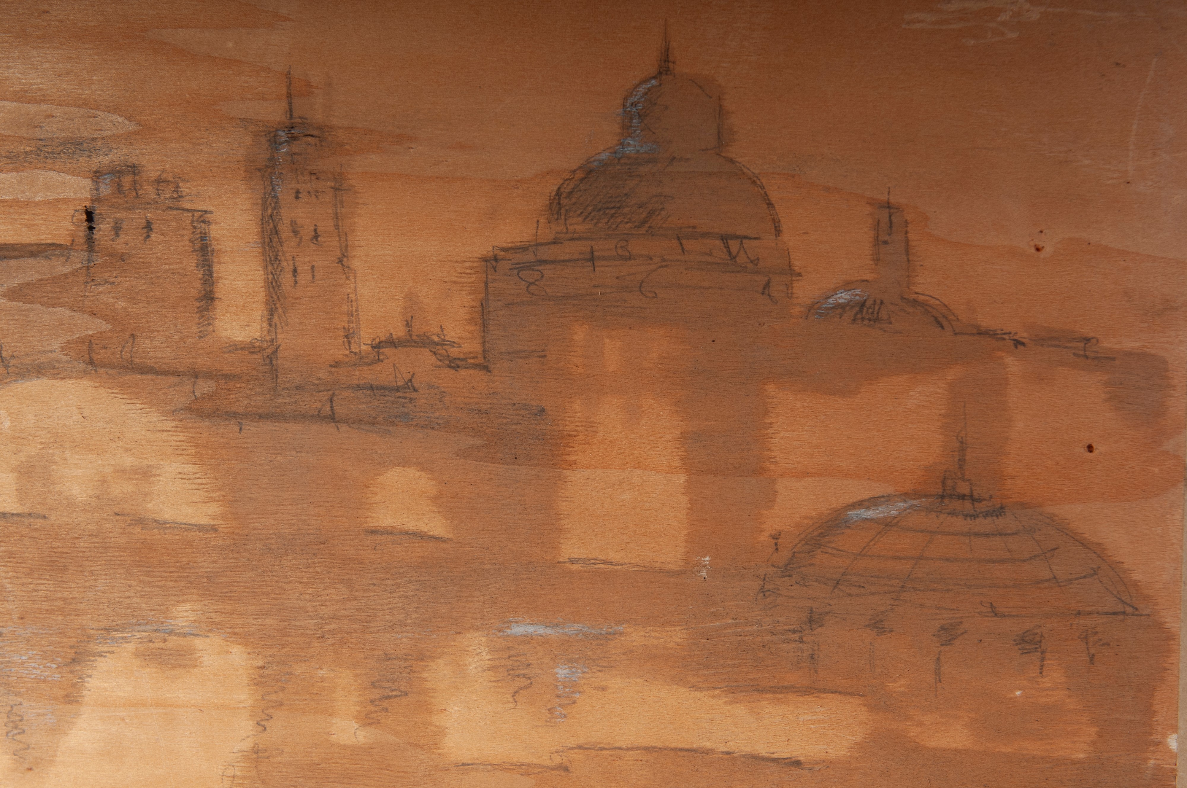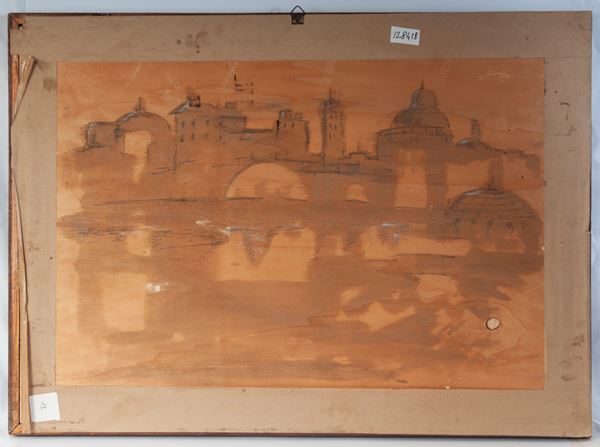 in cornice. Al retro bozzetto di citta'. Scuola italiana della meta' del XX secolo.