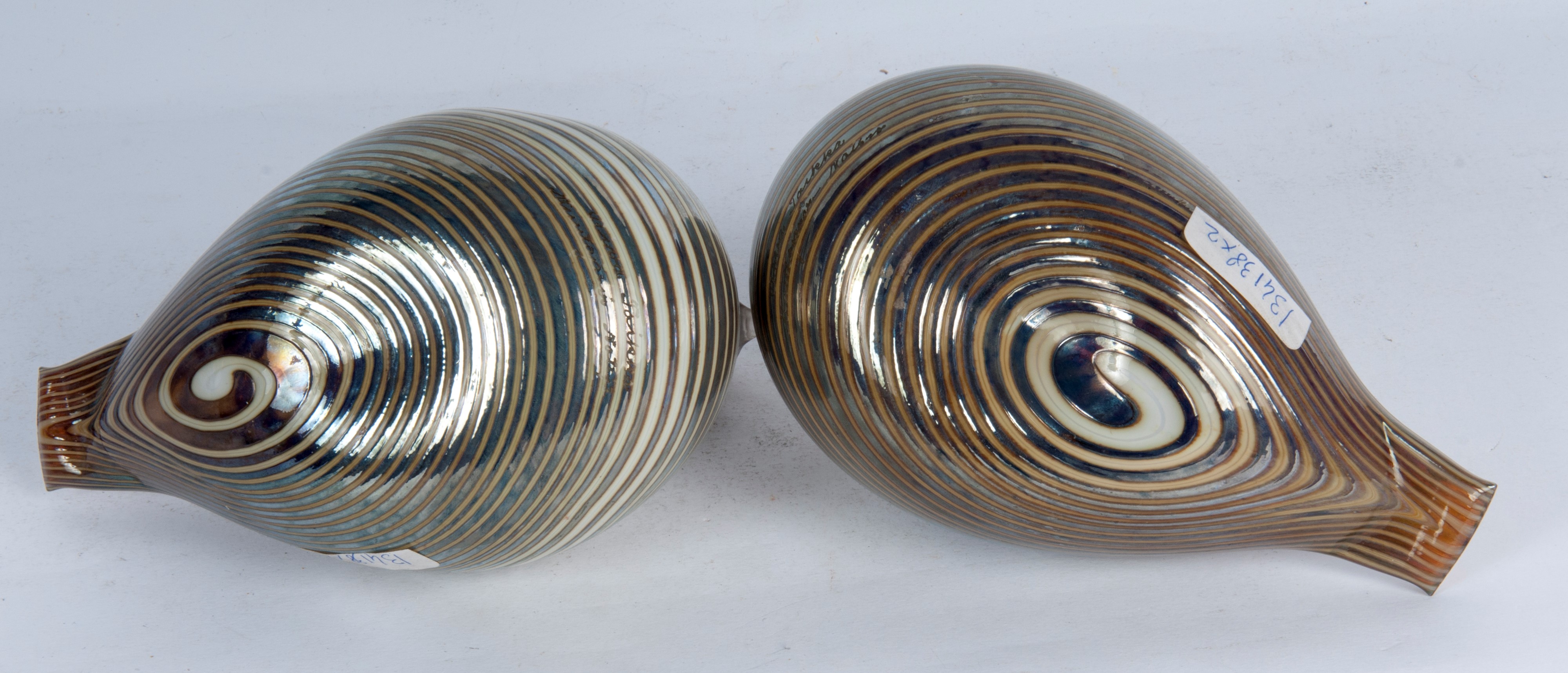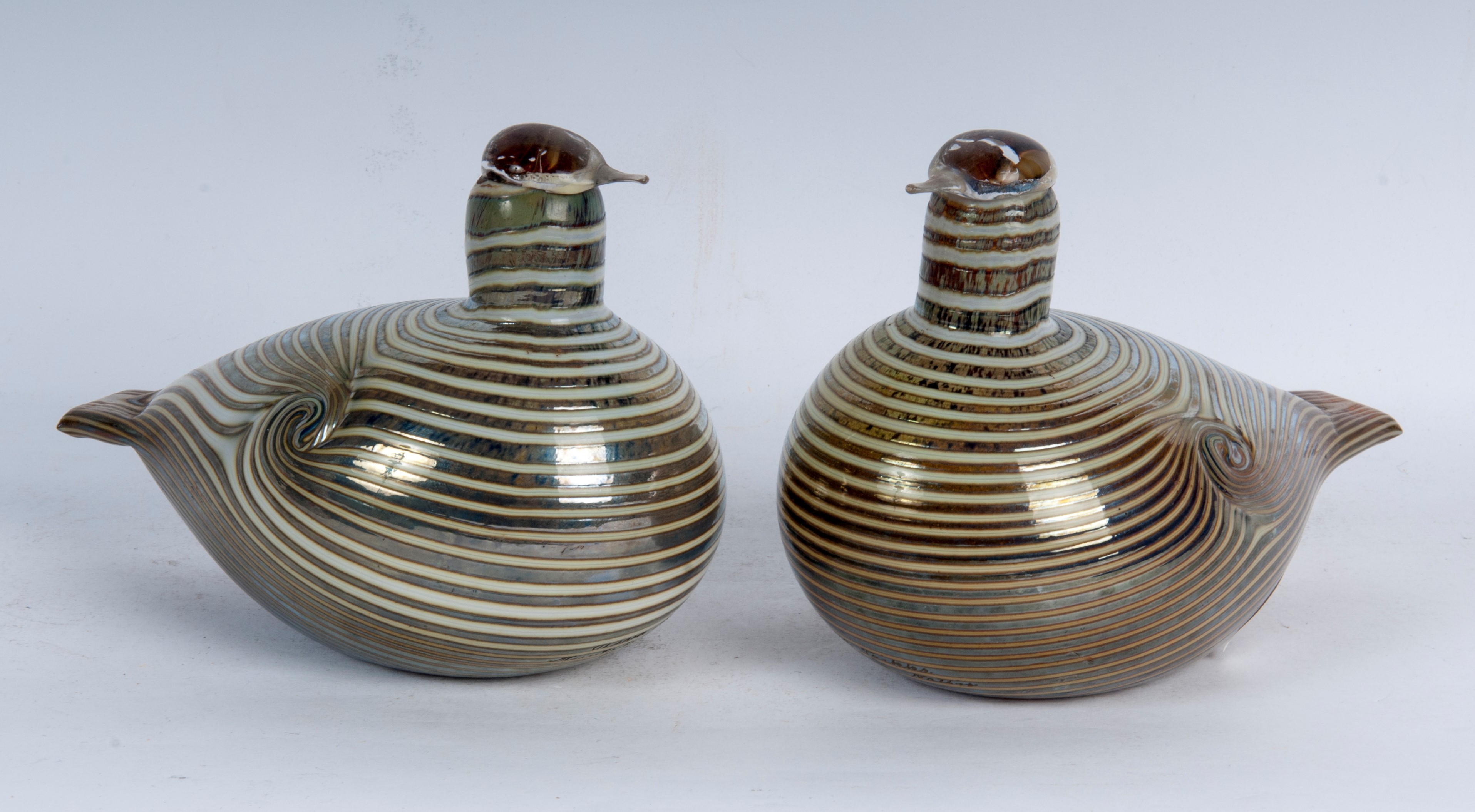 Lotto di due anatre in vetro iridescente, seconda metà XX secolo