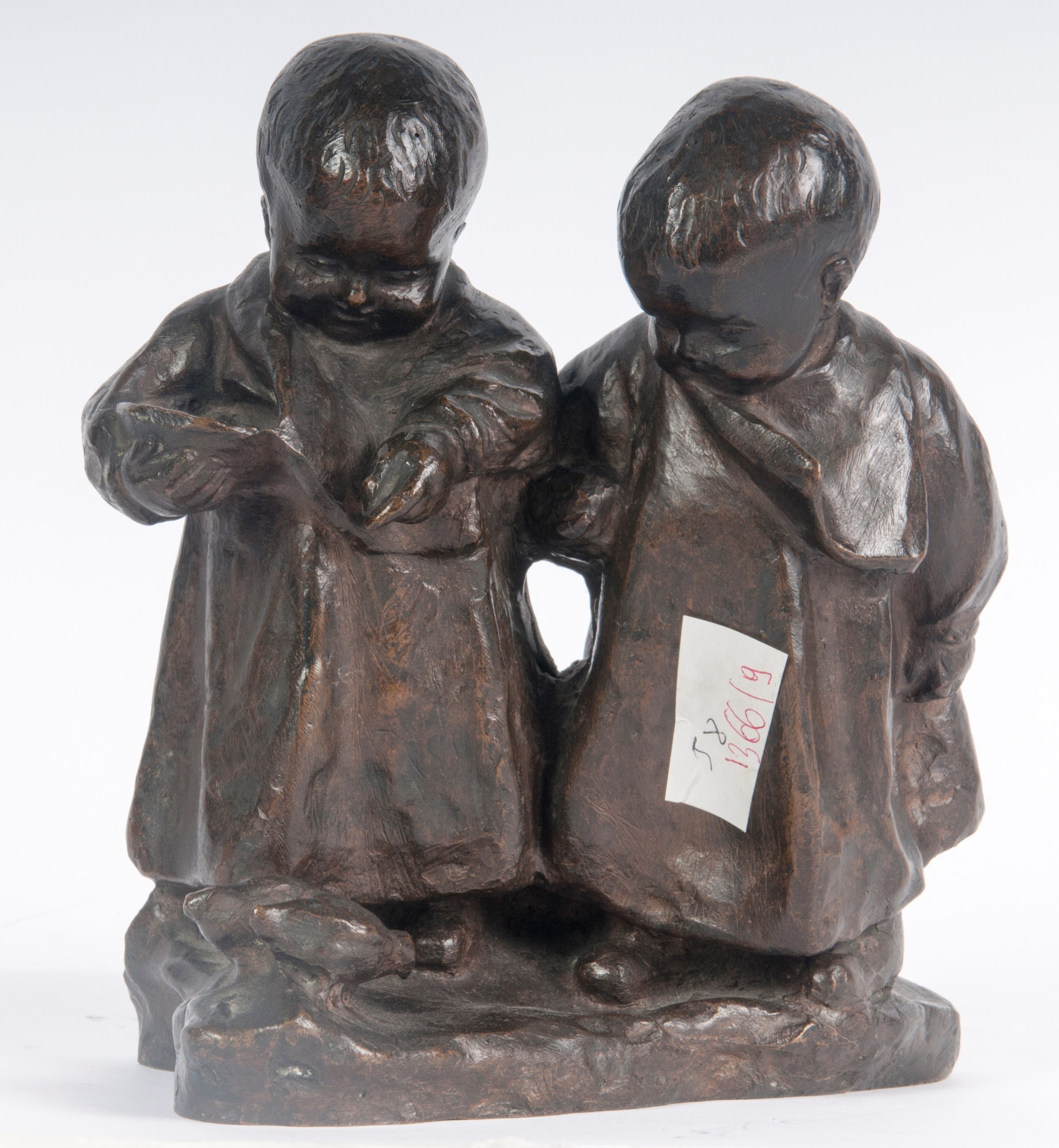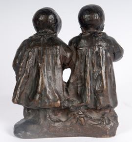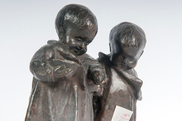 Coppia di bimbi, scultura in bronzo