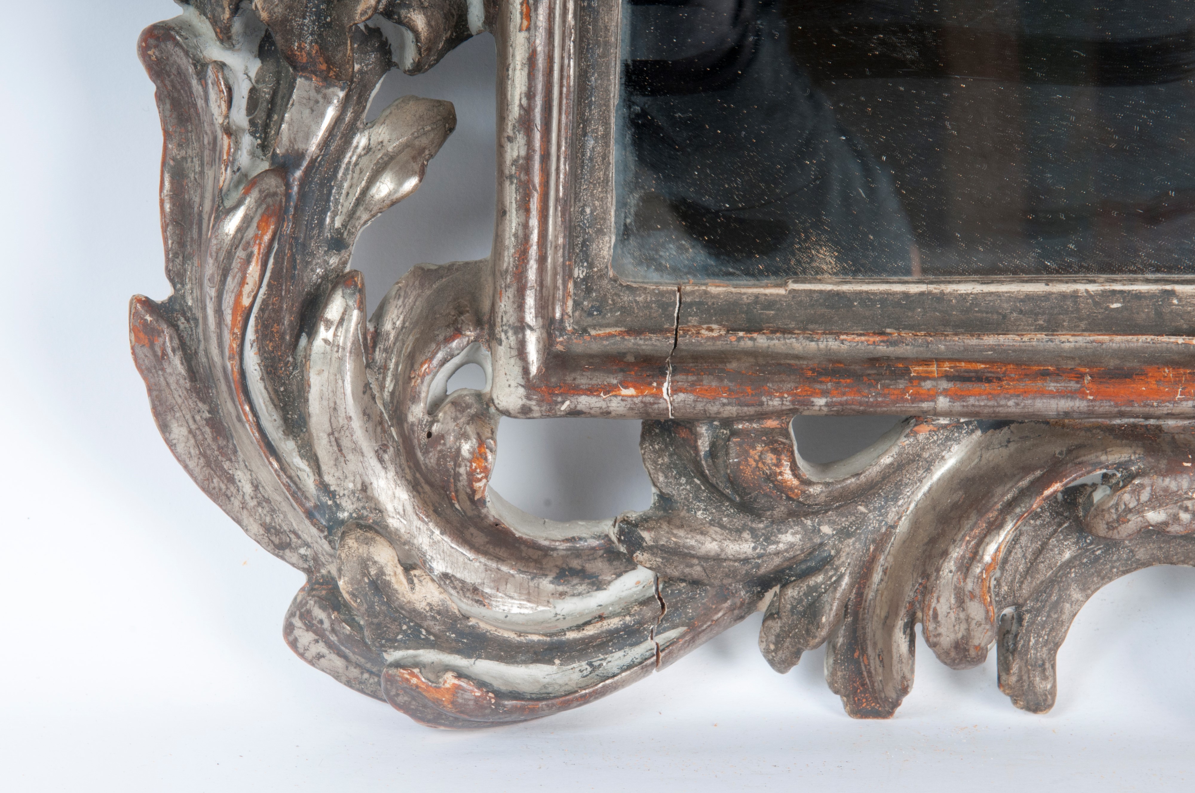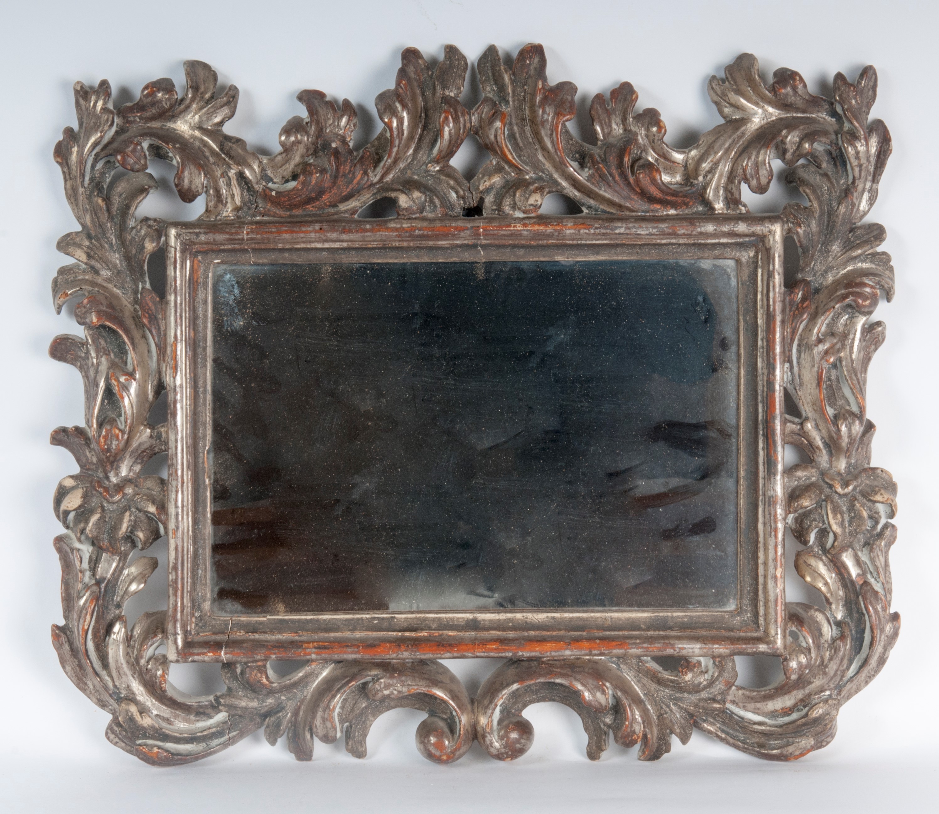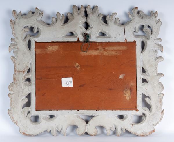 Specchiera da parete in legno argentato ed intagliato, XX secolo