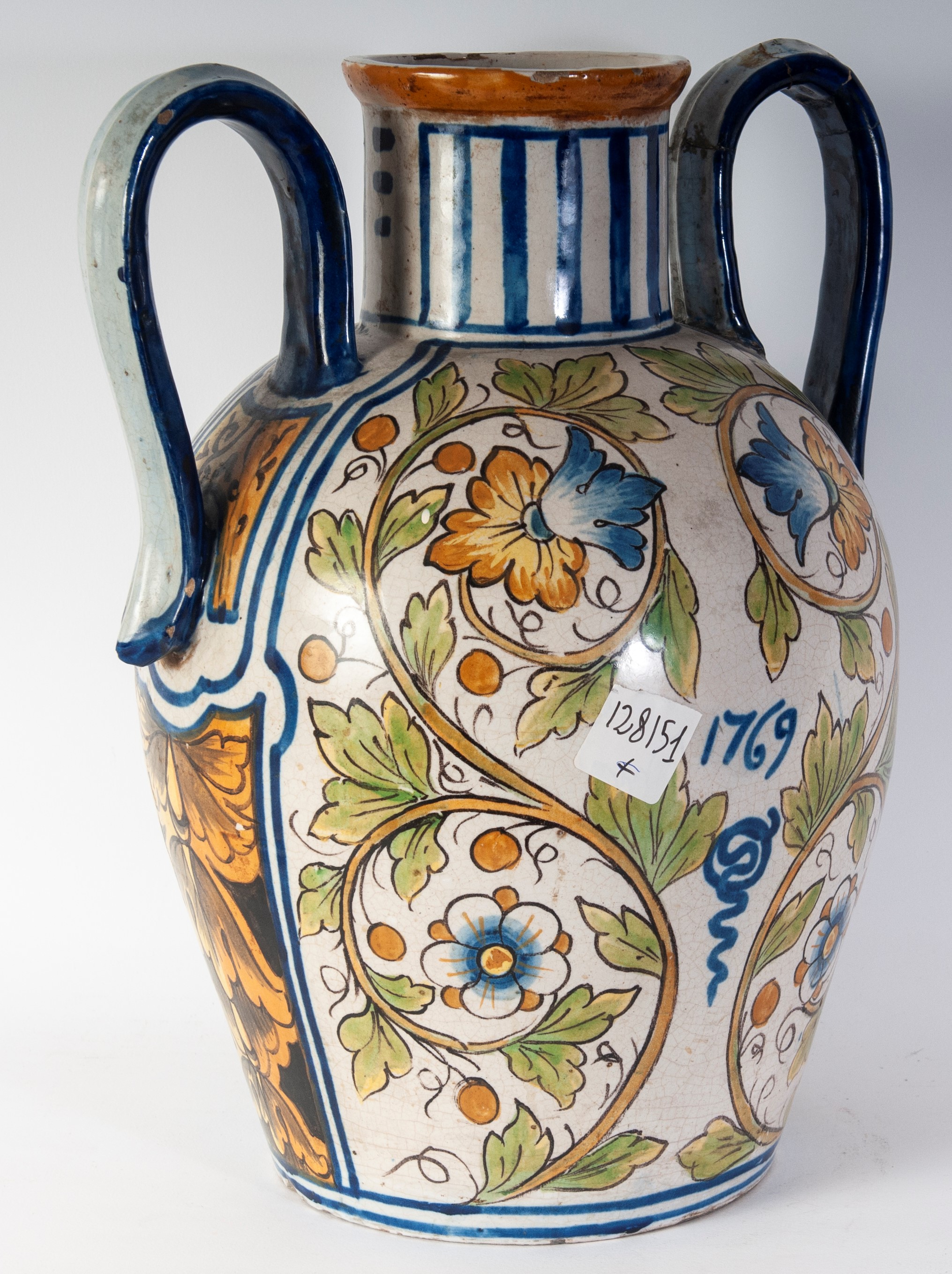 Vaso ad anfora biansato con stretto ed alto collo, fine XIX secolo inizi XX secolo
