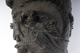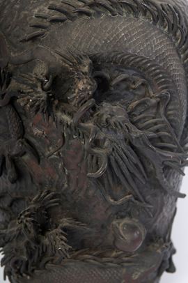 con figure di pesci e draghi a rilievo.