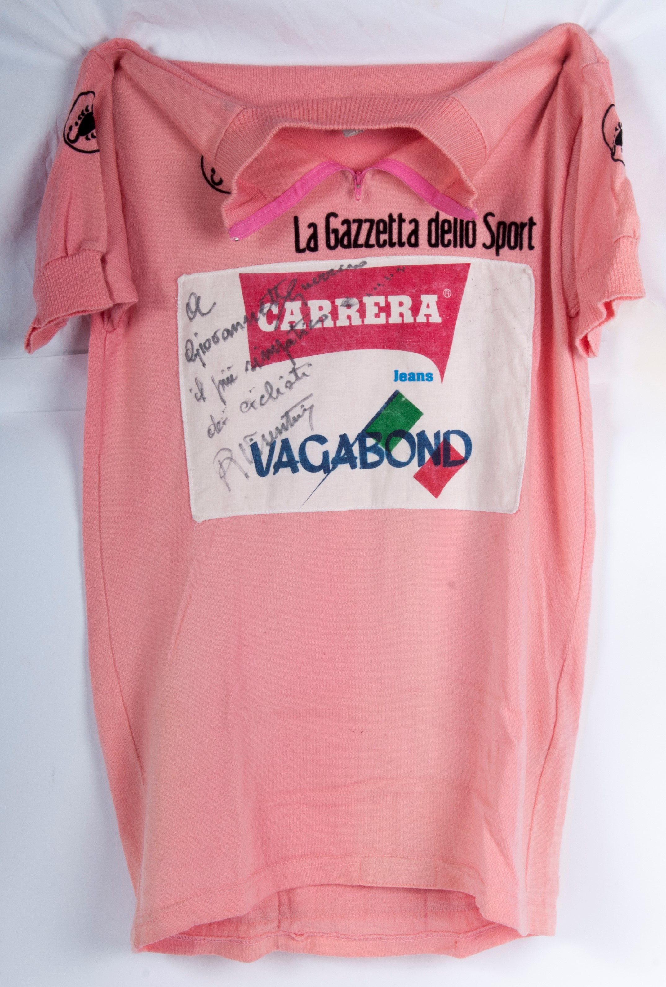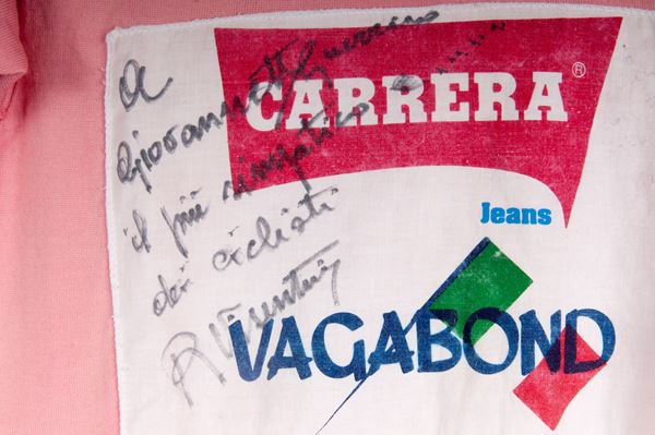 maglia gara Castelli a maniche corte. Sul fronte sponsor commerciali del giro la Gazzetta dello Sport , Carrera jeans e Vagabond con dedica e firma autografata.