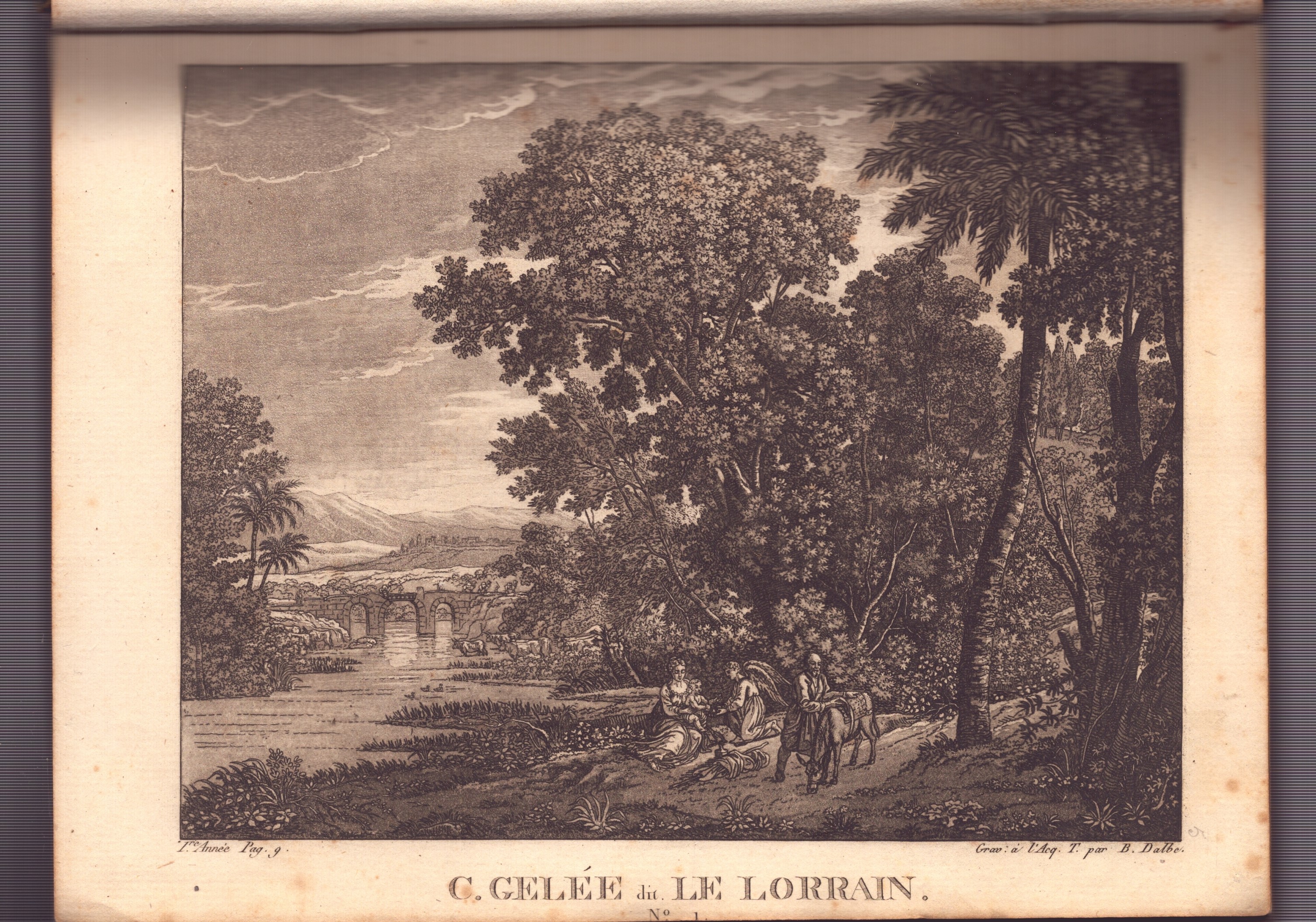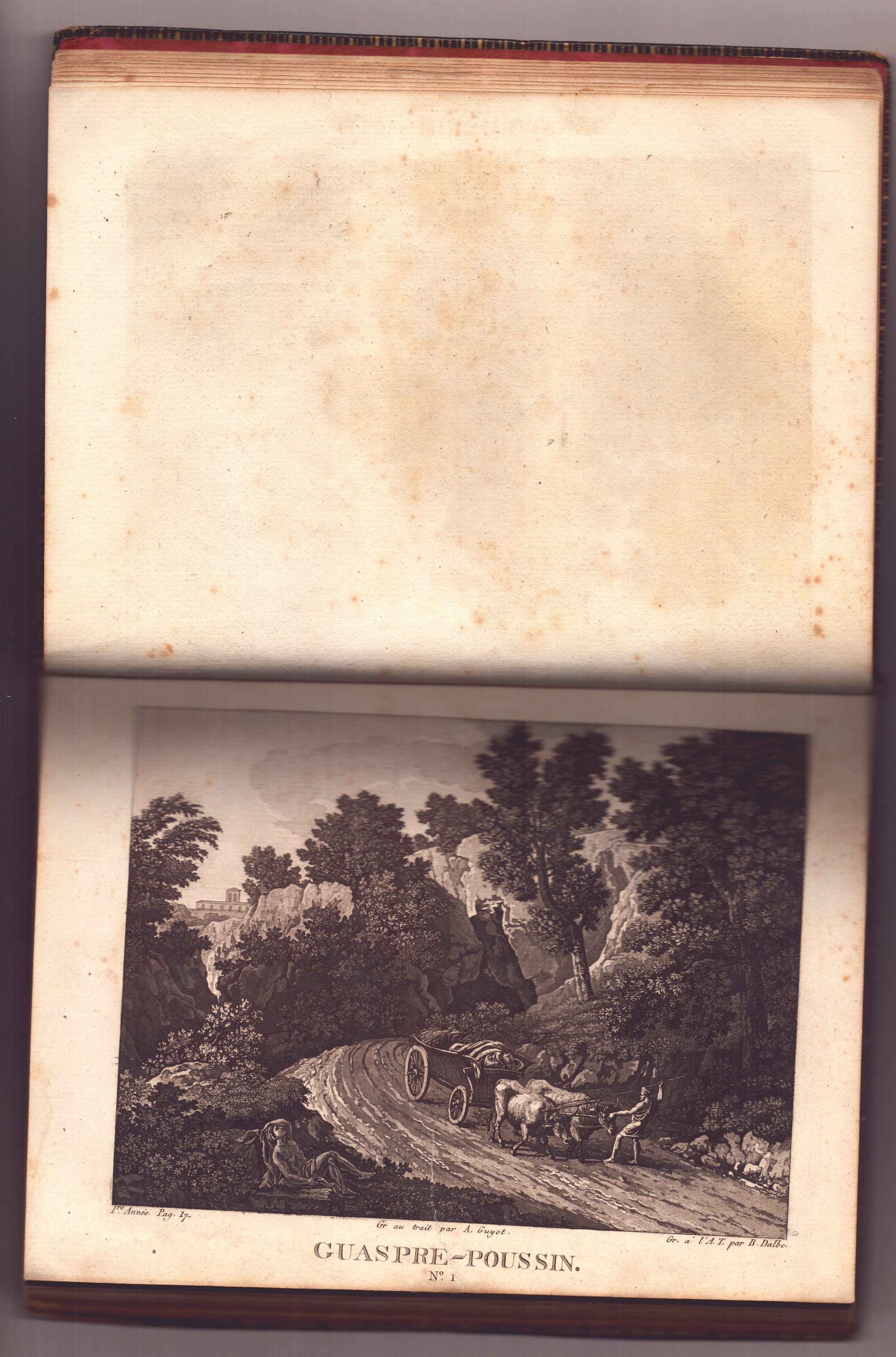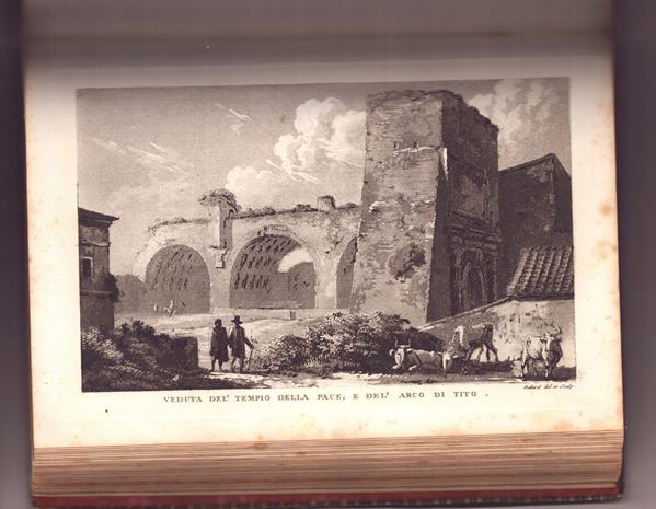 Le tavole sono eseguite all'acquaforte e lavis. Elegante e raffinata collezione di vedute italiane e romane. Edite intorno al 1810 da famosi artisti francesi: Bacler D'Albe, Baltand, Claude Lorrain, Poussin. Legatura coeva in pelle con filettatura dorata