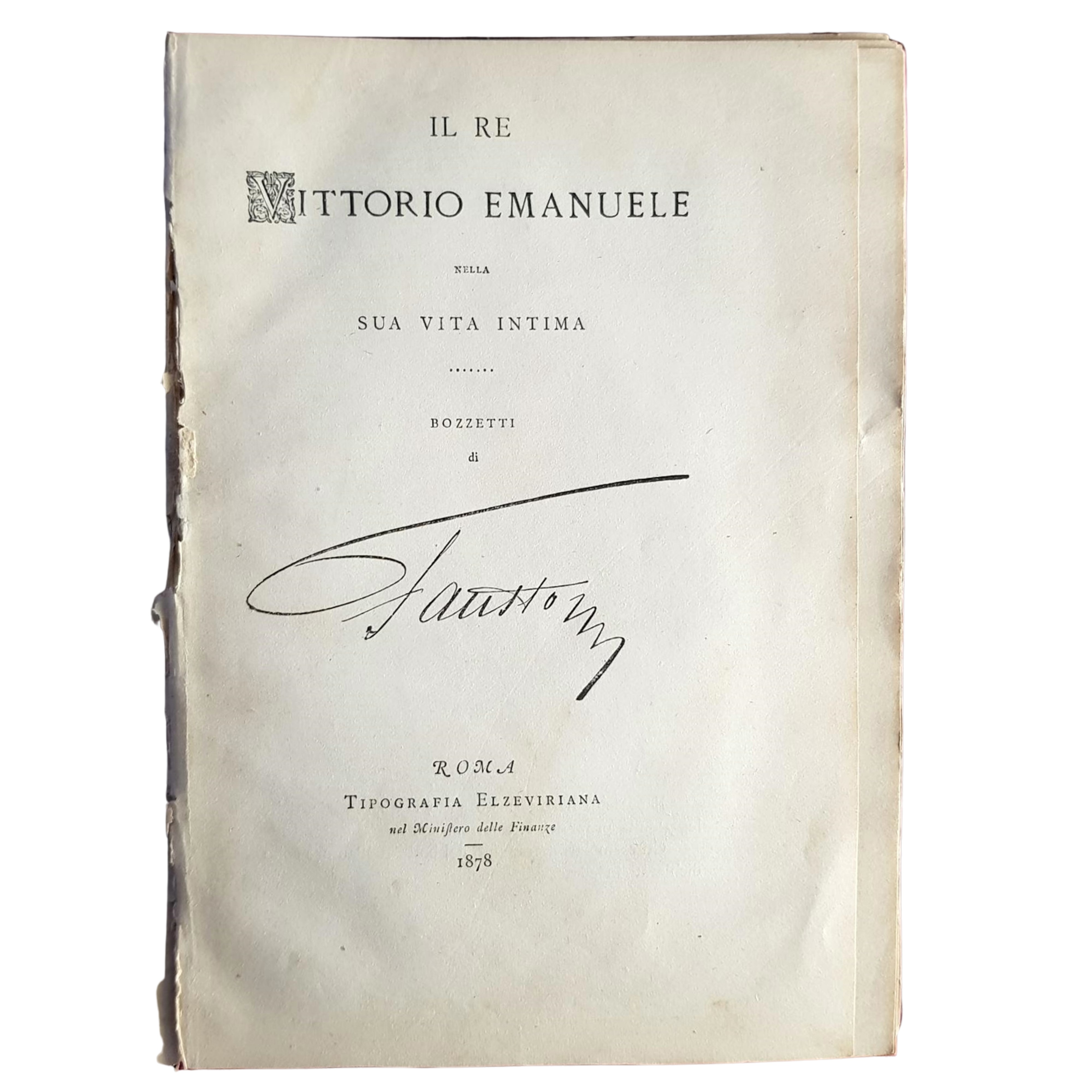FAUSTO (RINALDO DE STERLICH). Il Re Vittorio Emanuele nella sua vita intima. Bozzetti di Fausto, Roma, Tipografia Elzeviriana, 1878