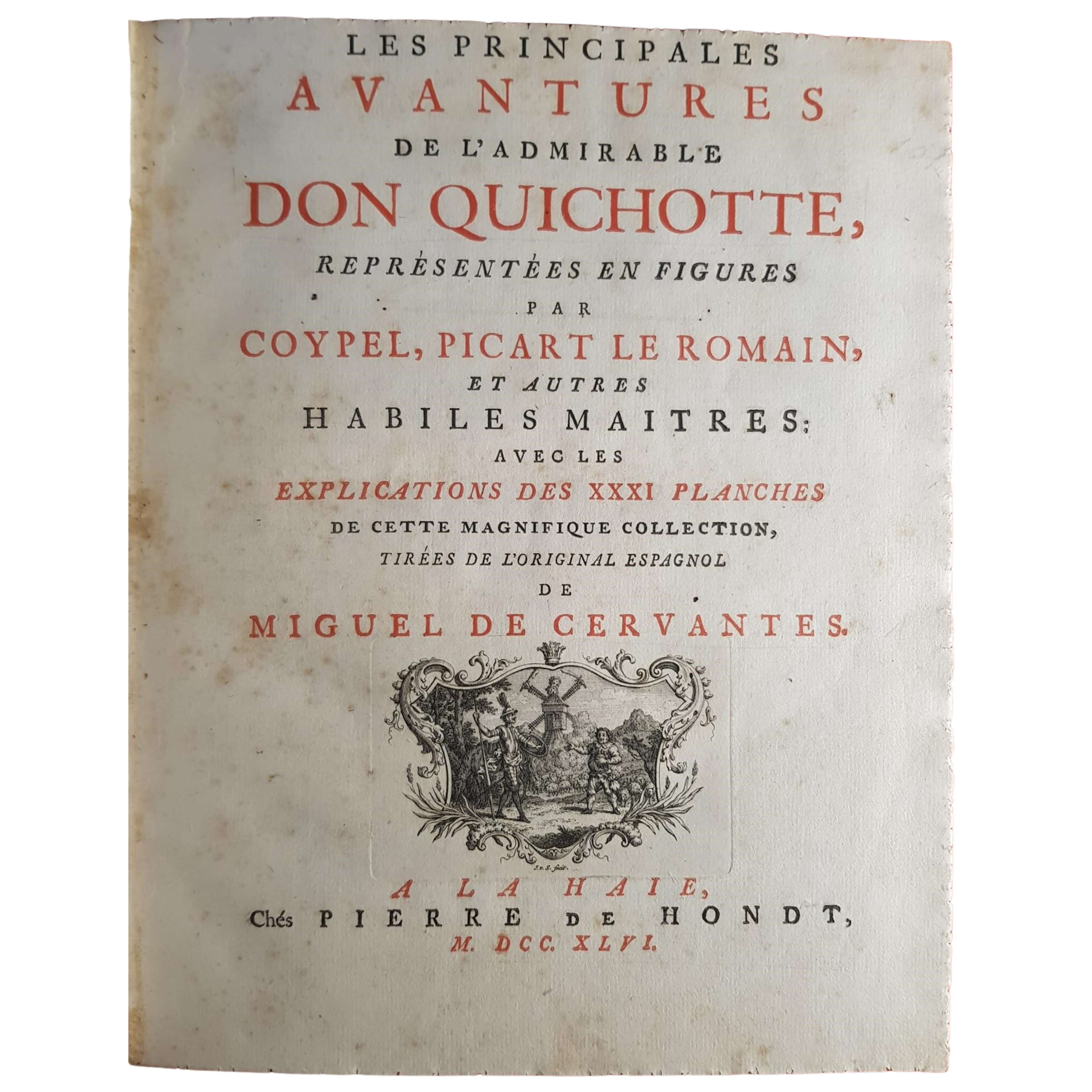 Les principales avantures de l’admirable Don Quichotte, représentées en figures par Coypel, Picart Le Romain et autres habiles maitres: avec les explications des XXXI planches de cette magnifique collection, tirées de l’original espagnol de Miguel De Cervantes