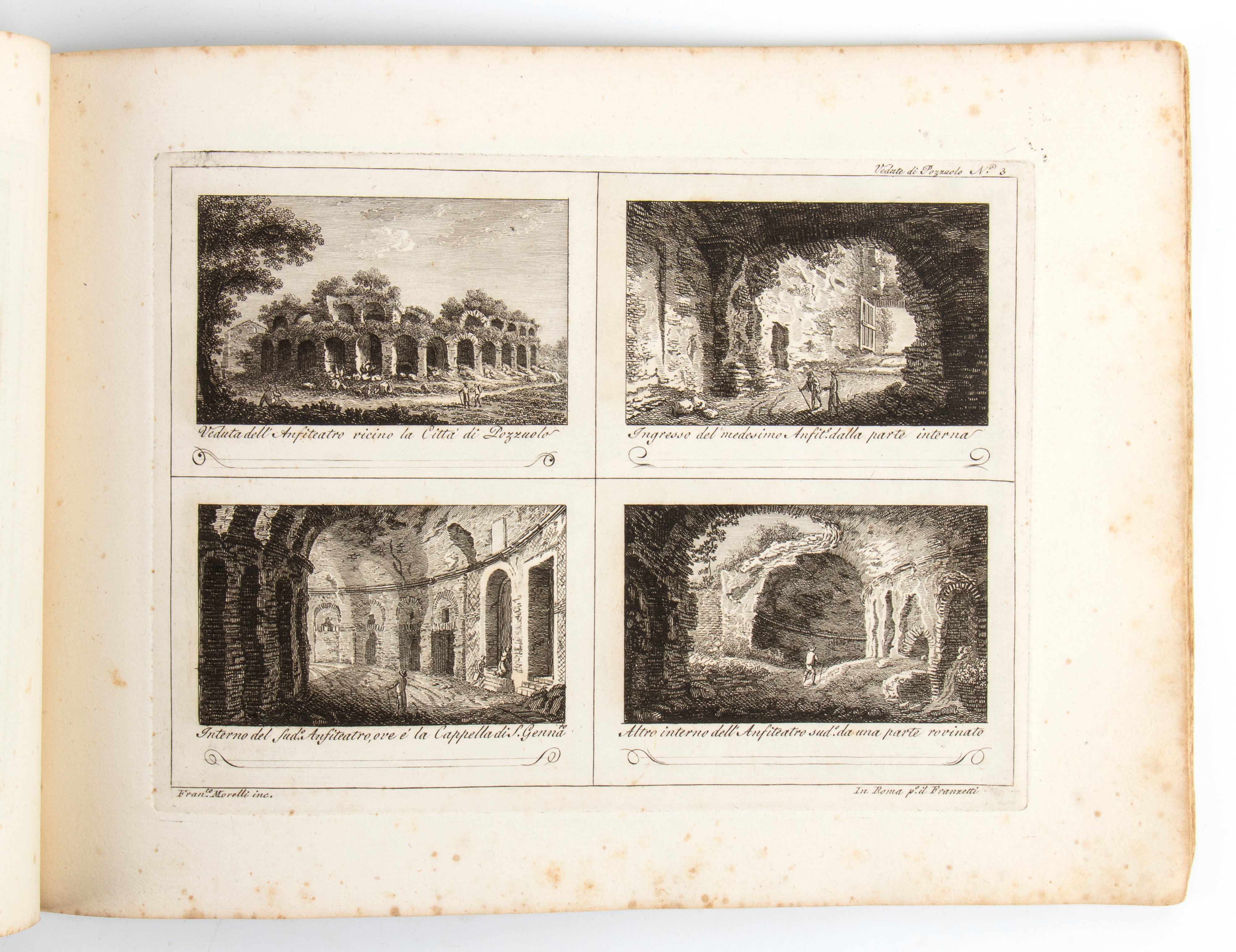 Serie di vedute incise di Francesco Morelli rilegate in un unico volume, tre con frontespizi. 1+8; 1+11; 1+5 Totale di 23 tavole incise. Alcune fioriture sparse.