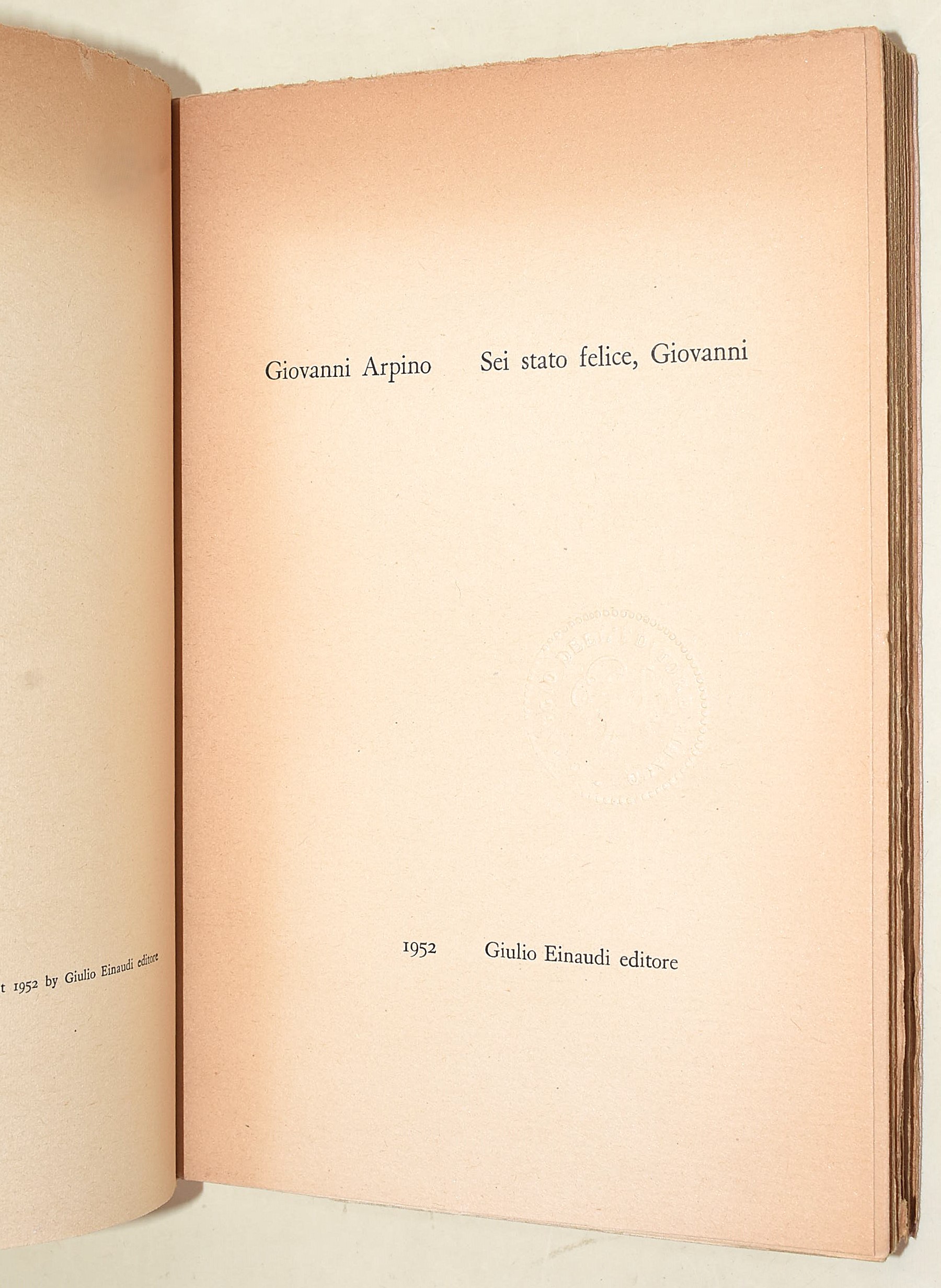 Arpino, Giovanni: Sei stato felice, Giovanni, Einaudi, 1952. Brossura editoriale. Prima edizione.