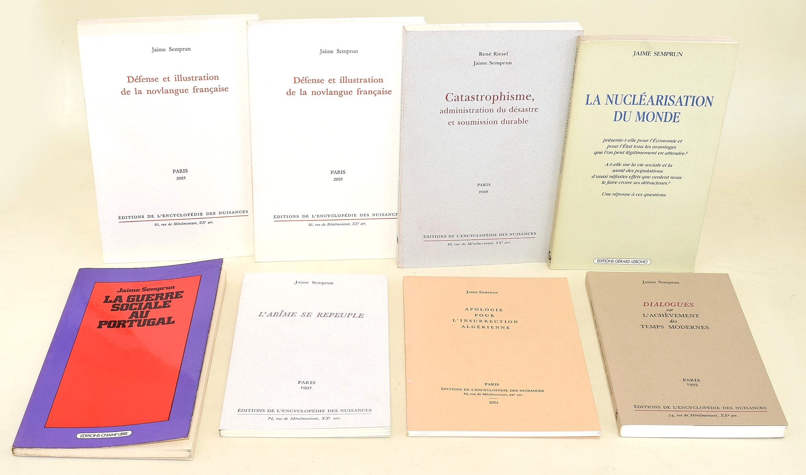 Semprun, Jaime: Défense et illustration de la novlangue française, Éditions de l'encyclopédie de nuisances, 2005. In due copie.
