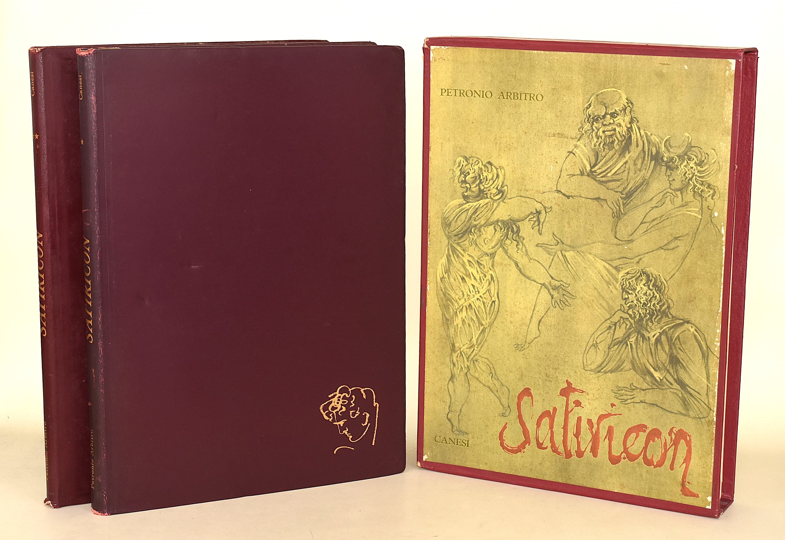 Petronio Arbitro: Satiricon. Introduzione e versione italiana di G. A. Cibotto. Tavole di Fabrizio Clerici, Canesi, 1963. 2 volumi. Copertina rigida con cofanetto lievemente usurato. Tiratura limitata: n. 167 di 1000.