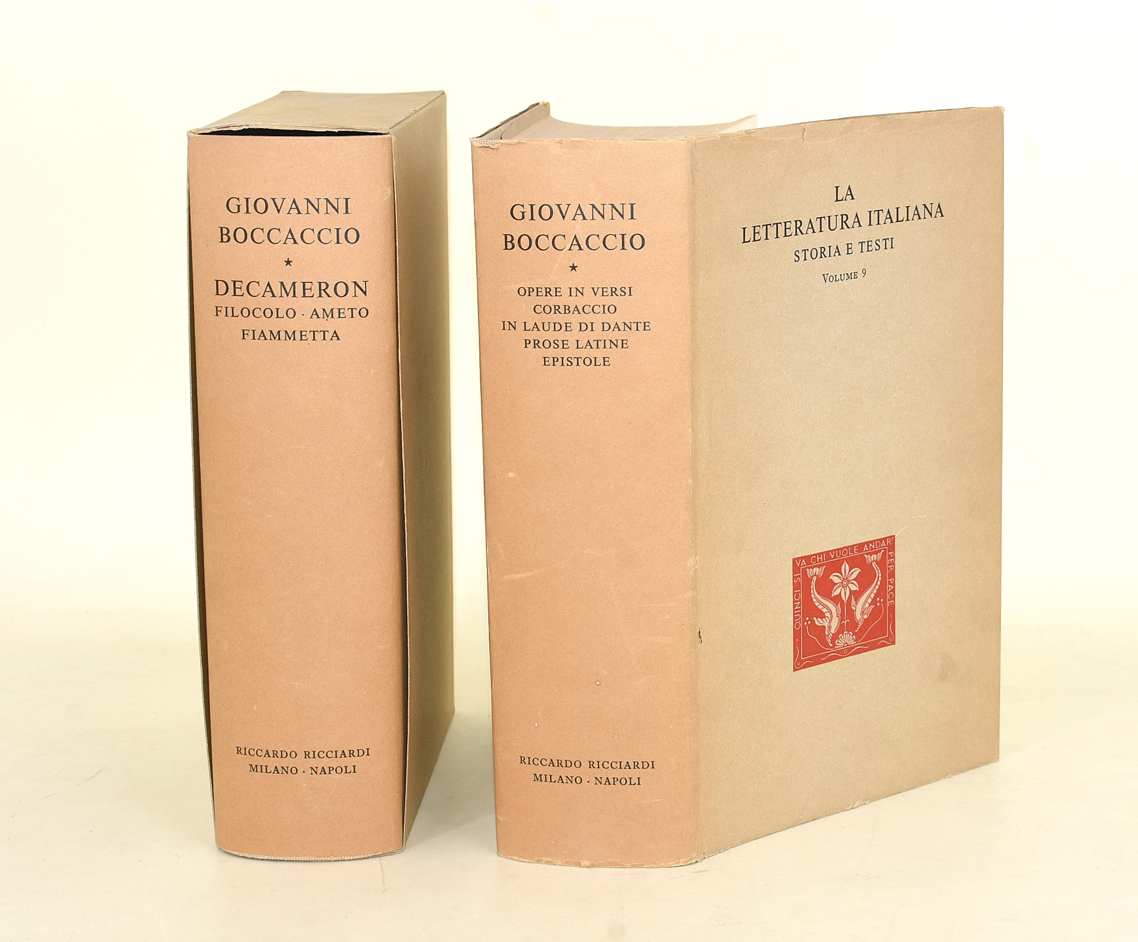 2 volumi su Giovanni Boccaccio in piena tela editoriale con sovracoperta da Ricciardi Editore:
