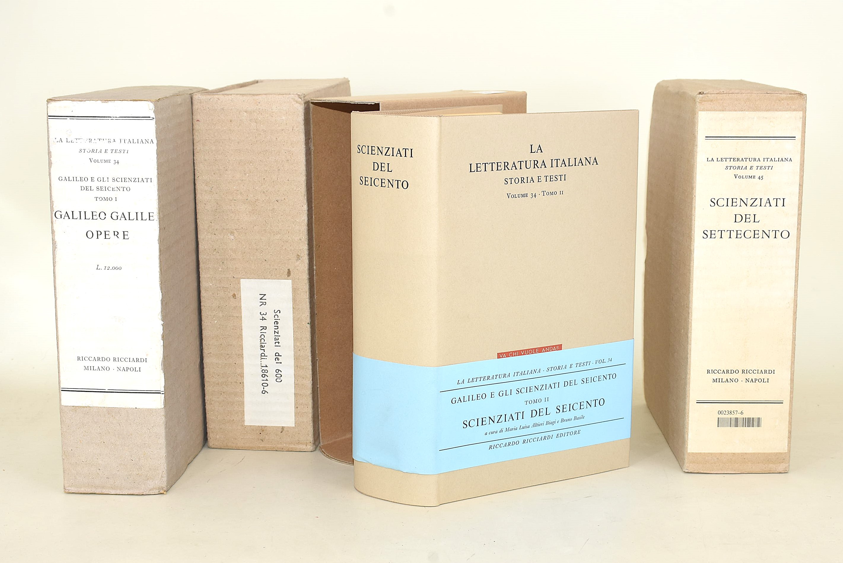 3 volumi in piena tela editoriale con sovracoperta, custodia, cofanetto da Ricciardi Editore: