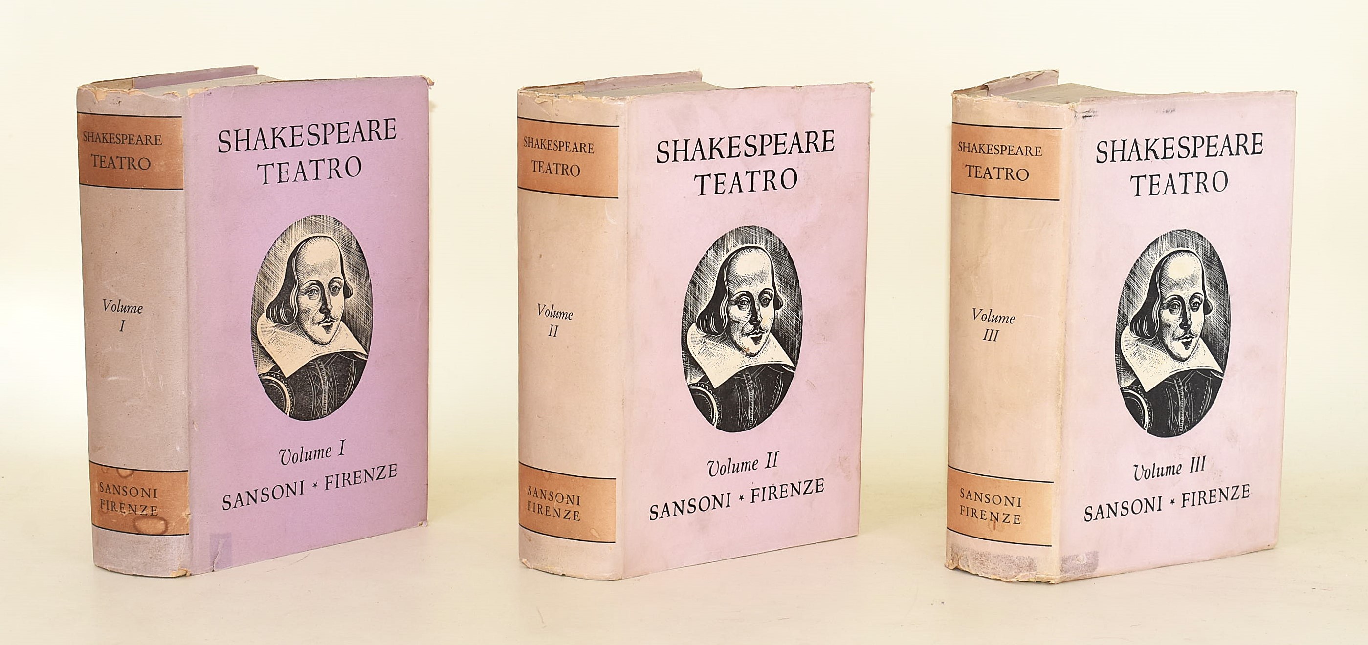 Shakespeare, William: Teatro, vol. I-III, Sansoni Firenze, 1943-1947. Copertina rigida con sovracoperta.