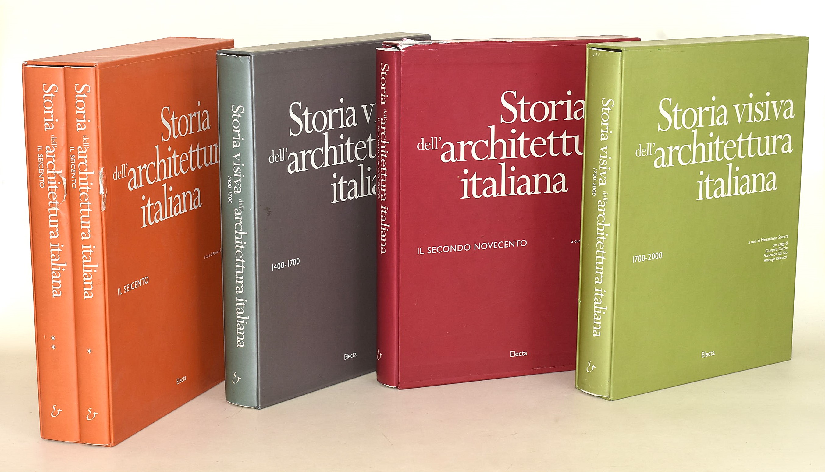 Storia dell'architettura visiva italiana, Mondadori Electa, 1997-2007. 5 volumi in 4°. Copertina in piena tela editoriale con sovracoperta e cofanetto.