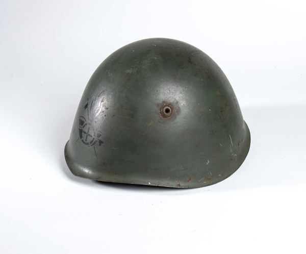 Elmetto grigioverde con bel fregio applicato a mascherina. In buono stato.