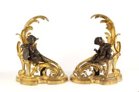 Alari da camino in bronzo dorato, Francia, XIX secolo