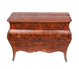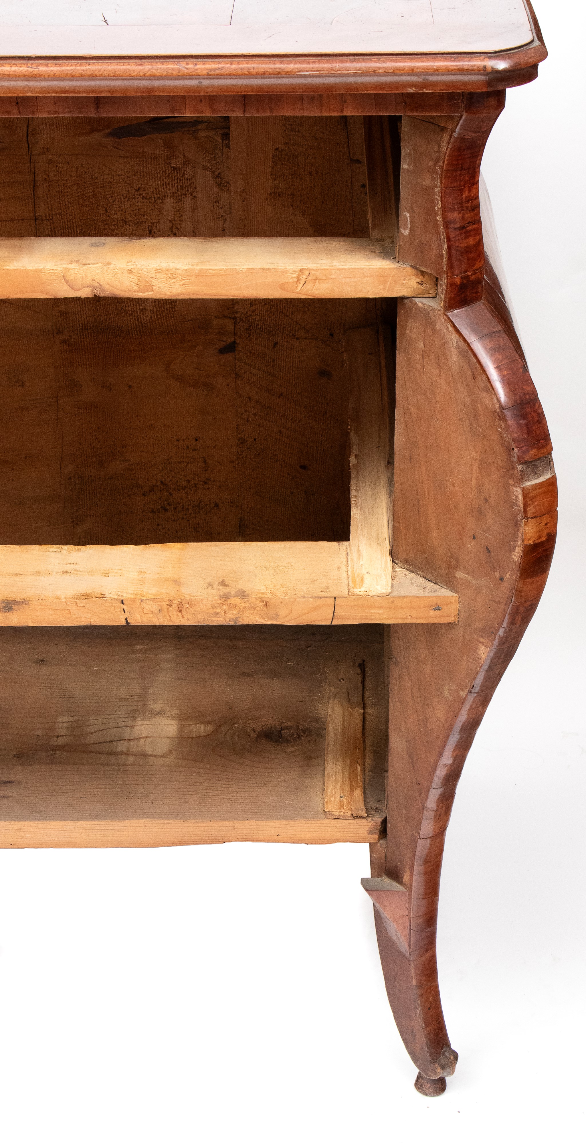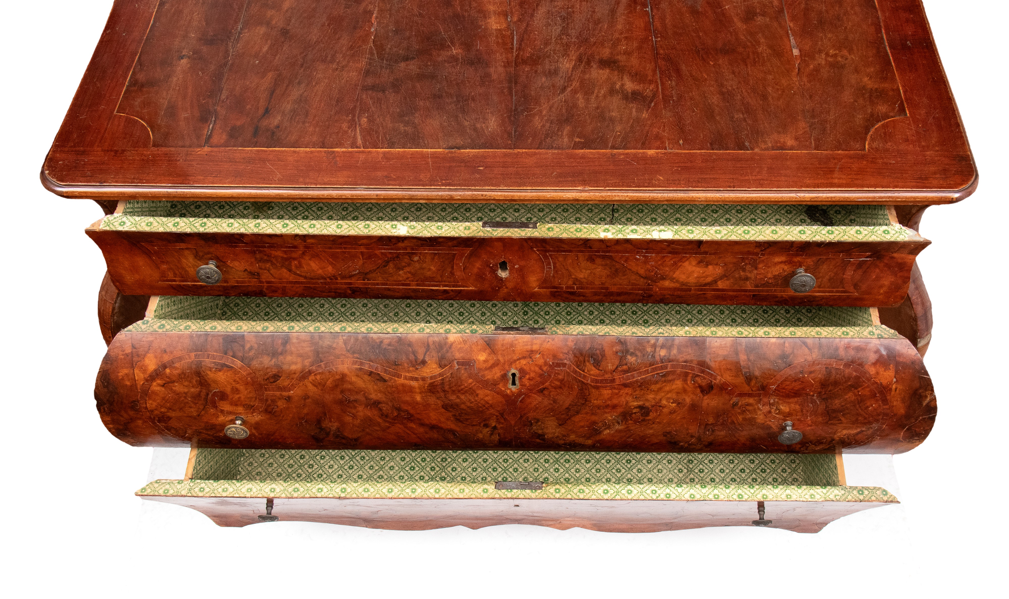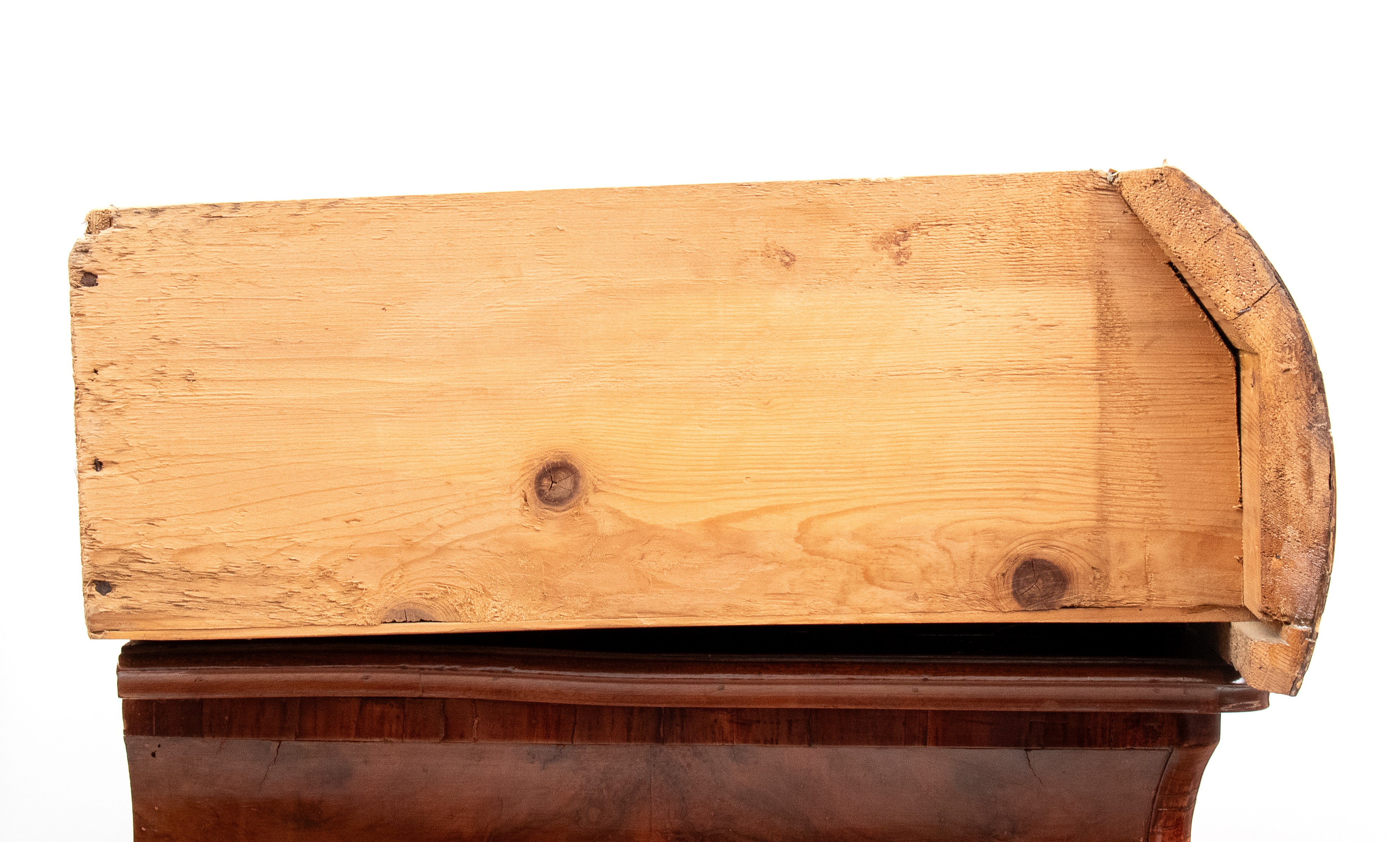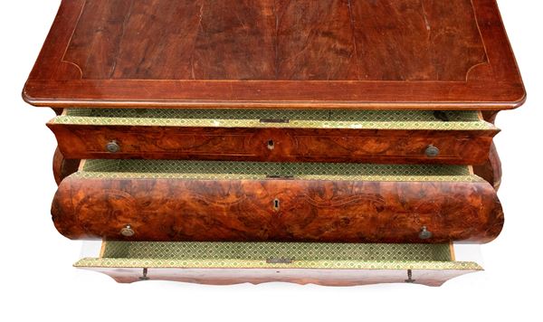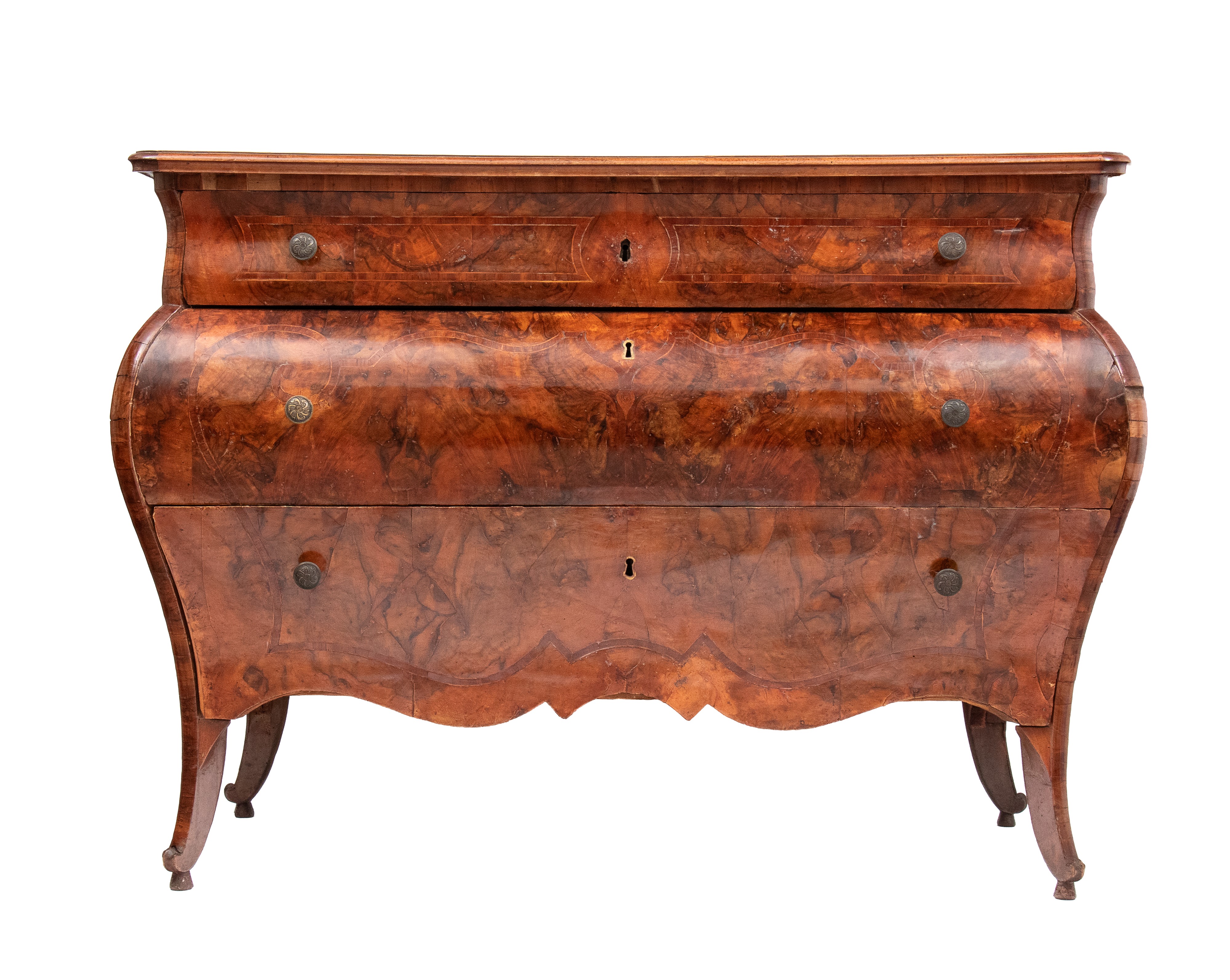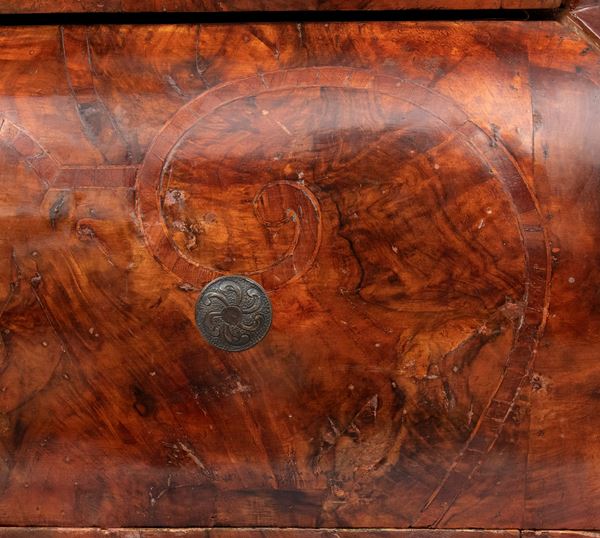 Comò barocchetto in radica di noce, Area lombardo-veneta, XVIII secolo