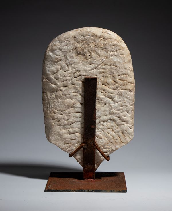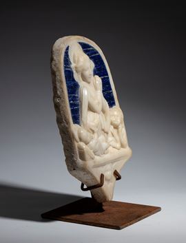 in marmo bianco e lapislazzuli, raffigurante la Vergine, il bambino Gesù e il San Giovannino.