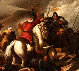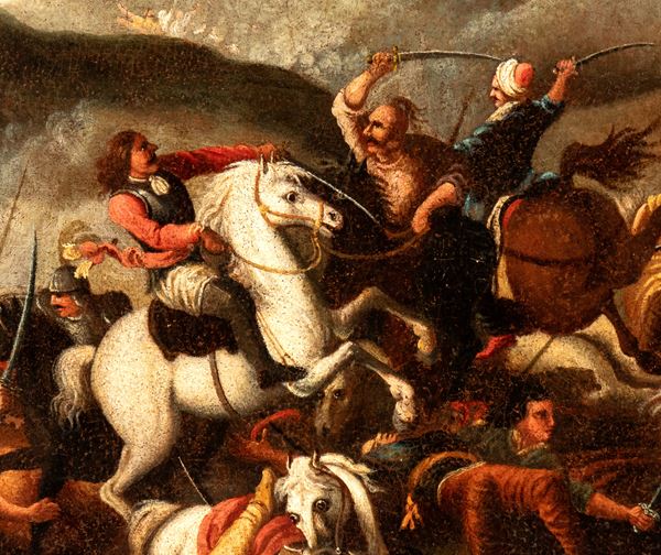 Scena di battaglia tra cavalleria europea e ottomana, XIX secolo