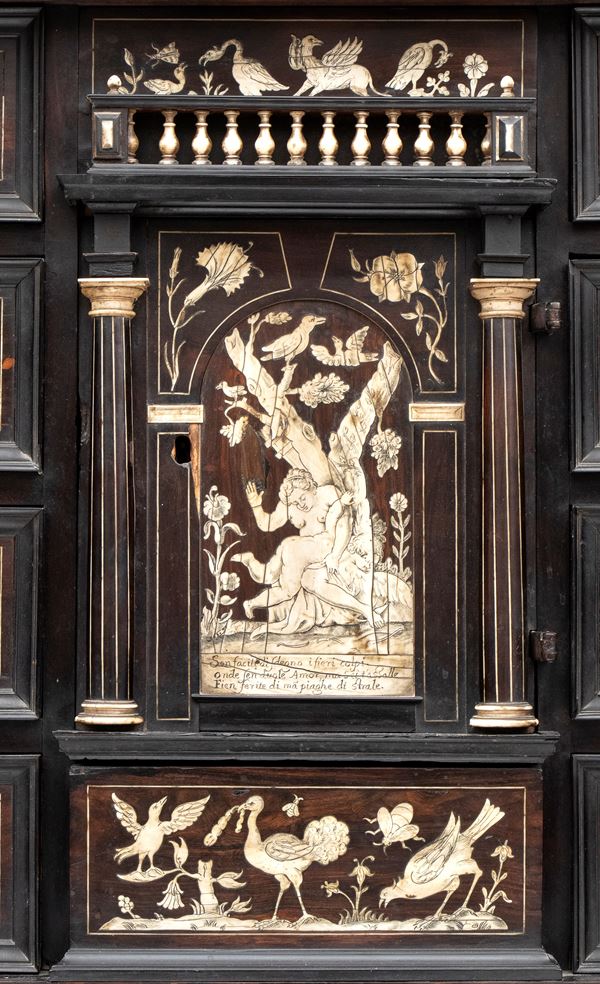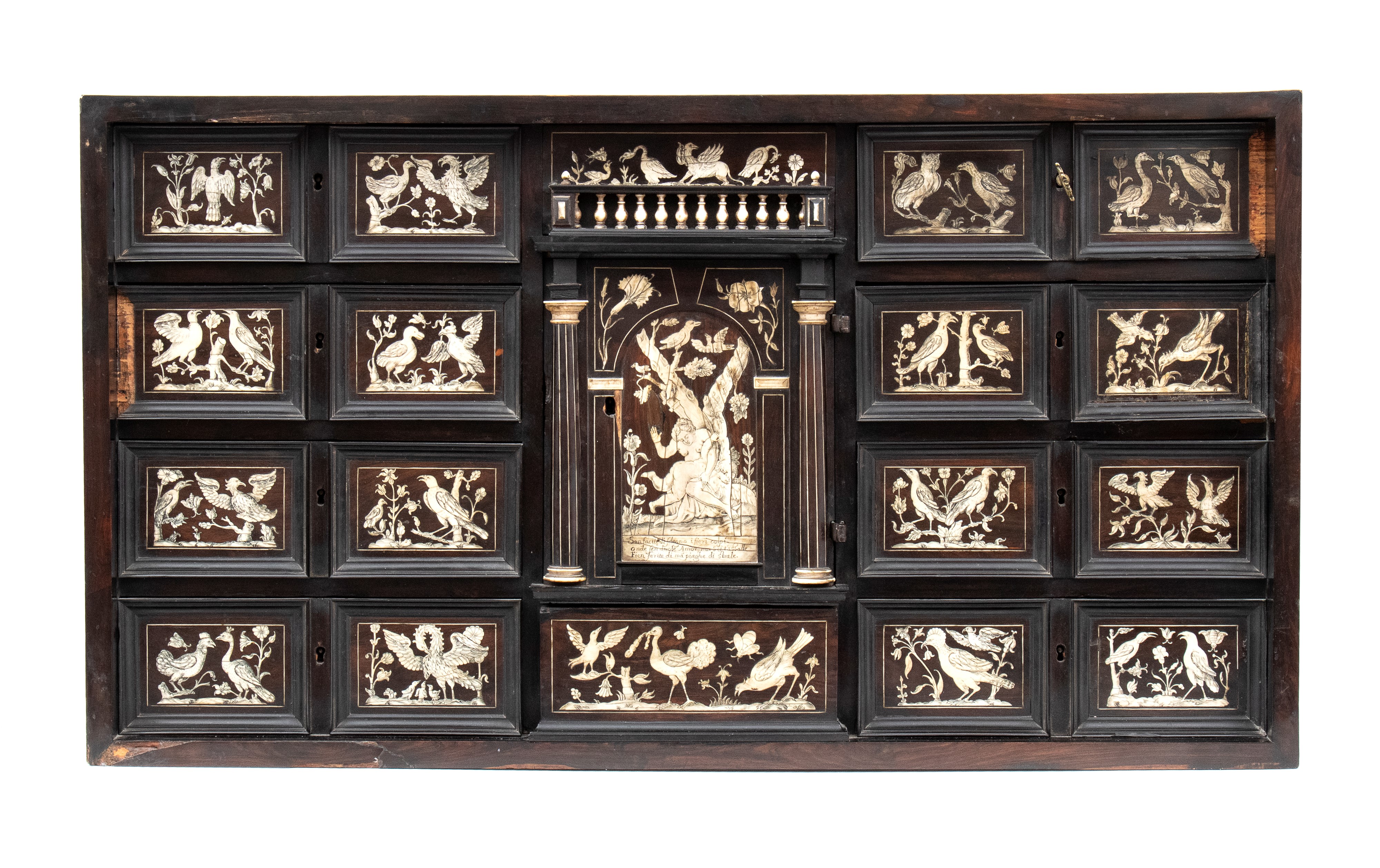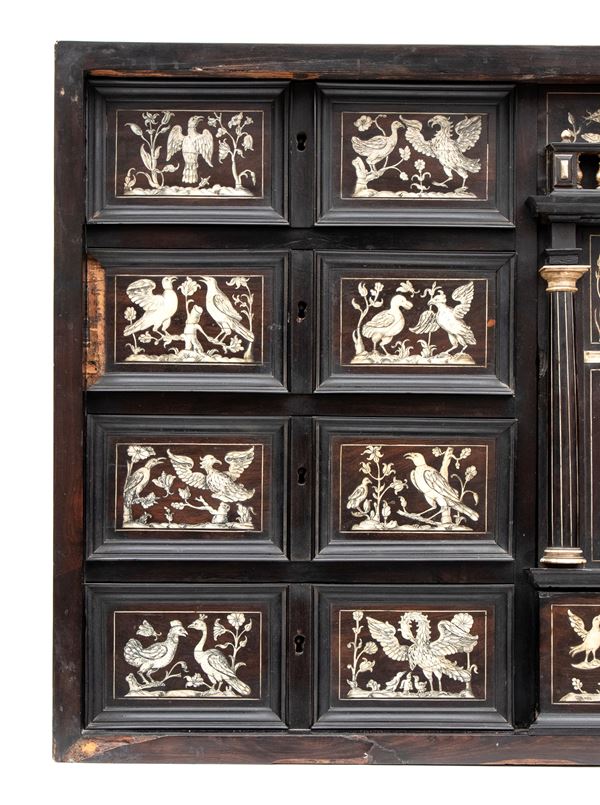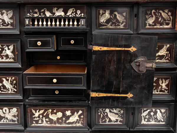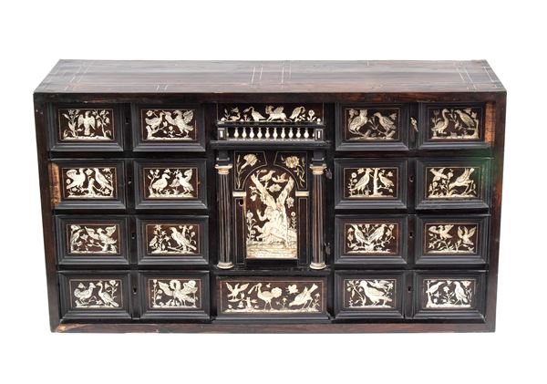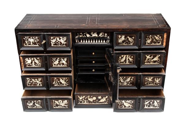 Stipo monetiere in legno ebanizzato con intarsi in osso, Roma, Fine XVII - inizi XVIII secolo