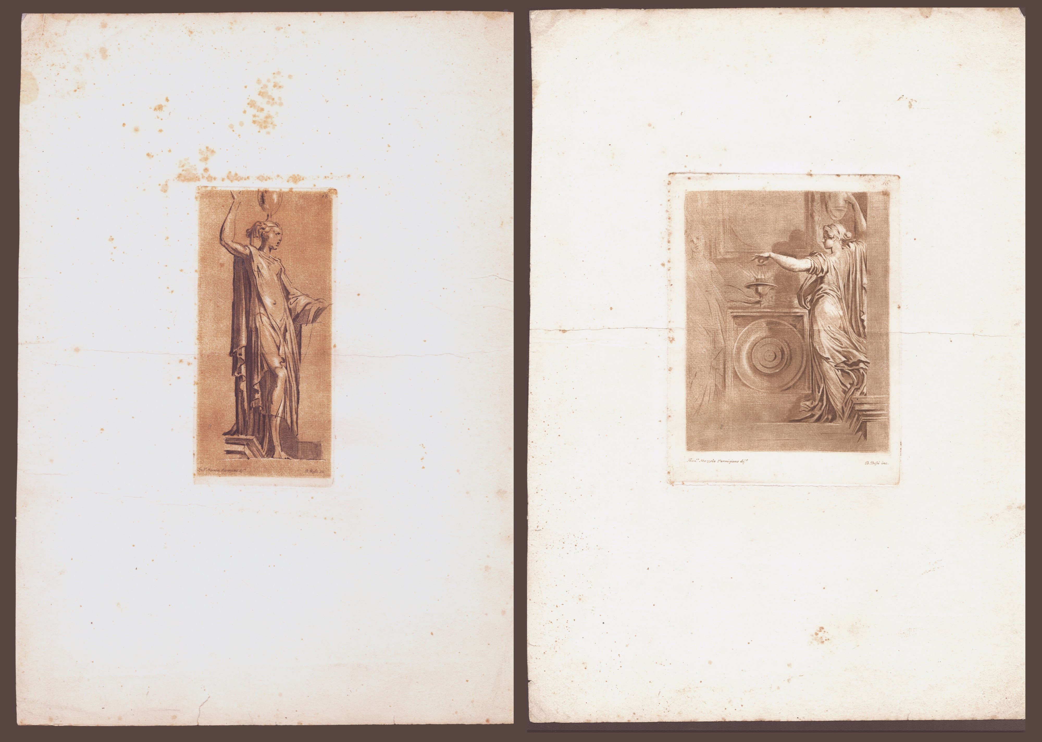 Lotto di due incisioni tratta da " Raccolta di disegni originali di Fra. Mazzola detto il Parmigianino".
